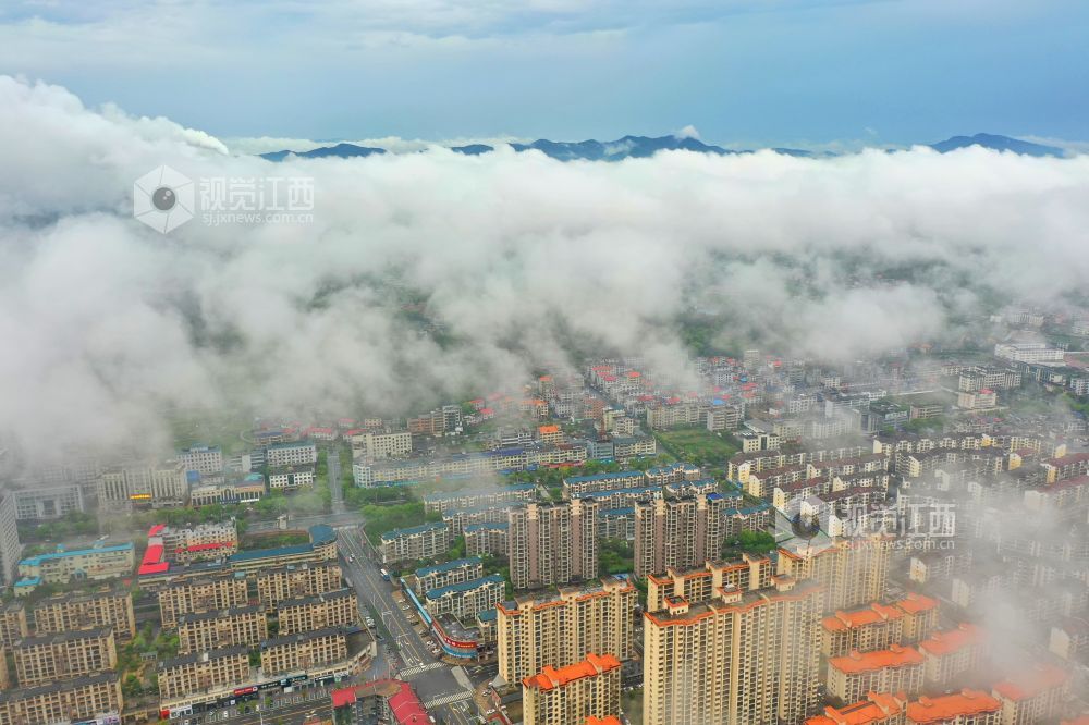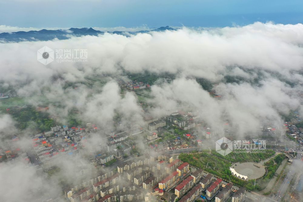 2023年4月4日,一场春雨过后,江西省萍乡市芦溪县城云雾缭绕,如诗如画,宛若仙境。
