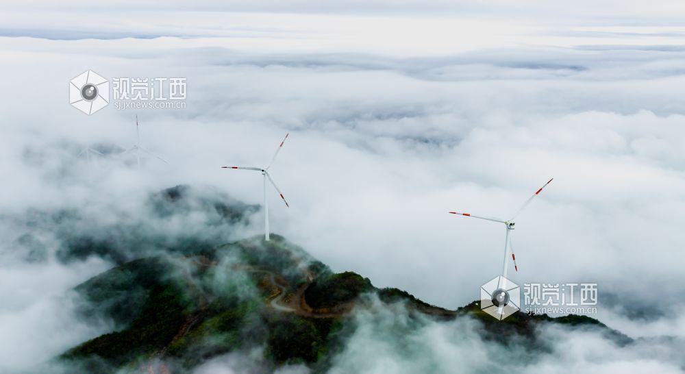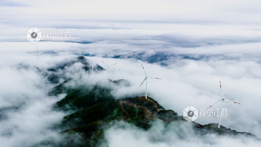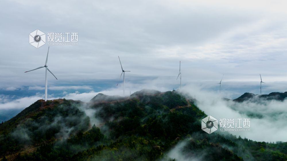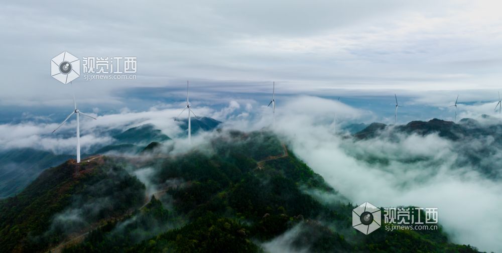 2023年4月4日,江西省瑞昌市中源村秦山桃源风电场在云海、青山映衬下,展现出一幅美丽画卷。瑞昌市坚持绿色发展理念,利用高山风力资源优势,大力发展绿色清洁能源,推动能源低碳转型,一座座风车迎风旋转,将绿色能源输入千家万户。