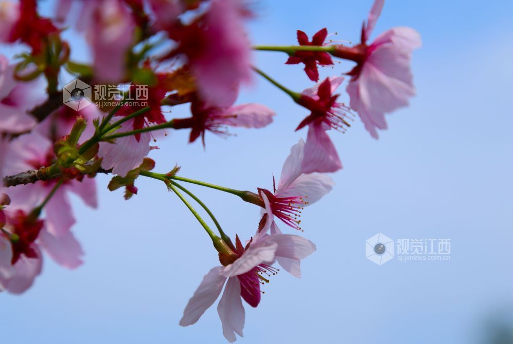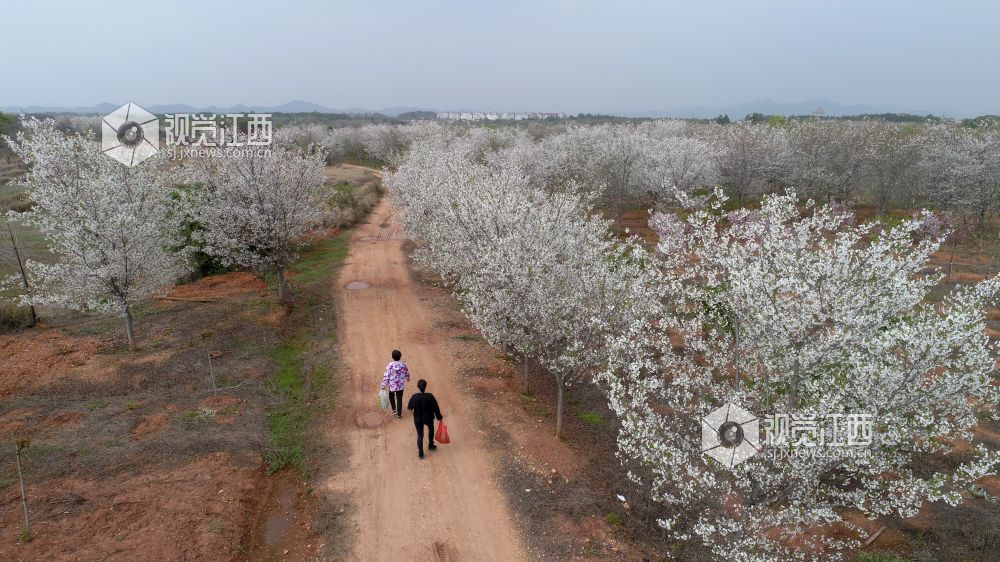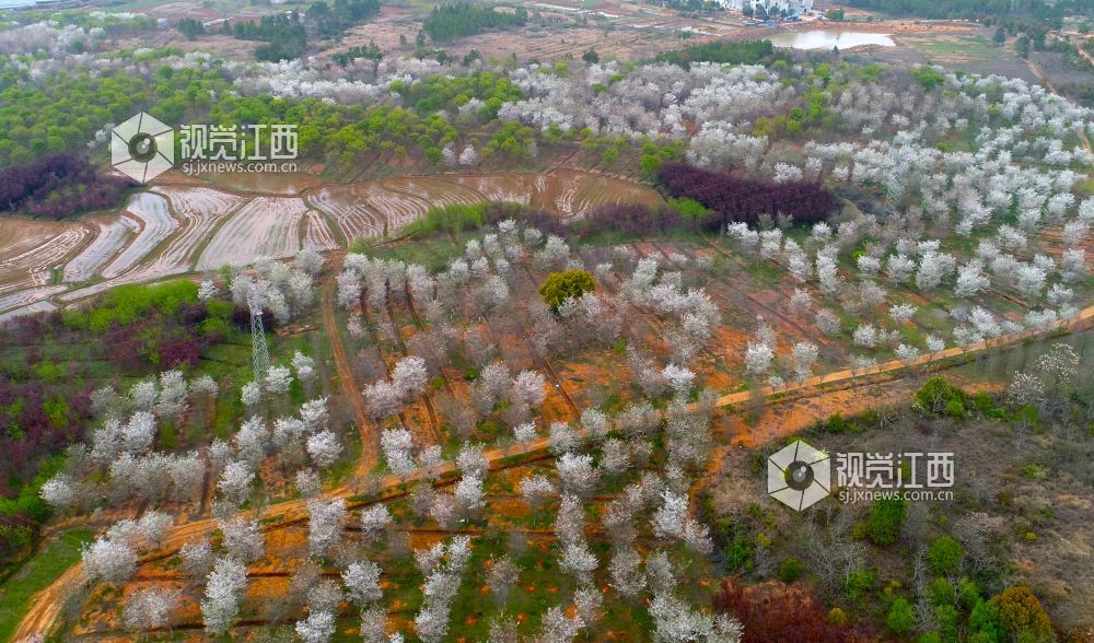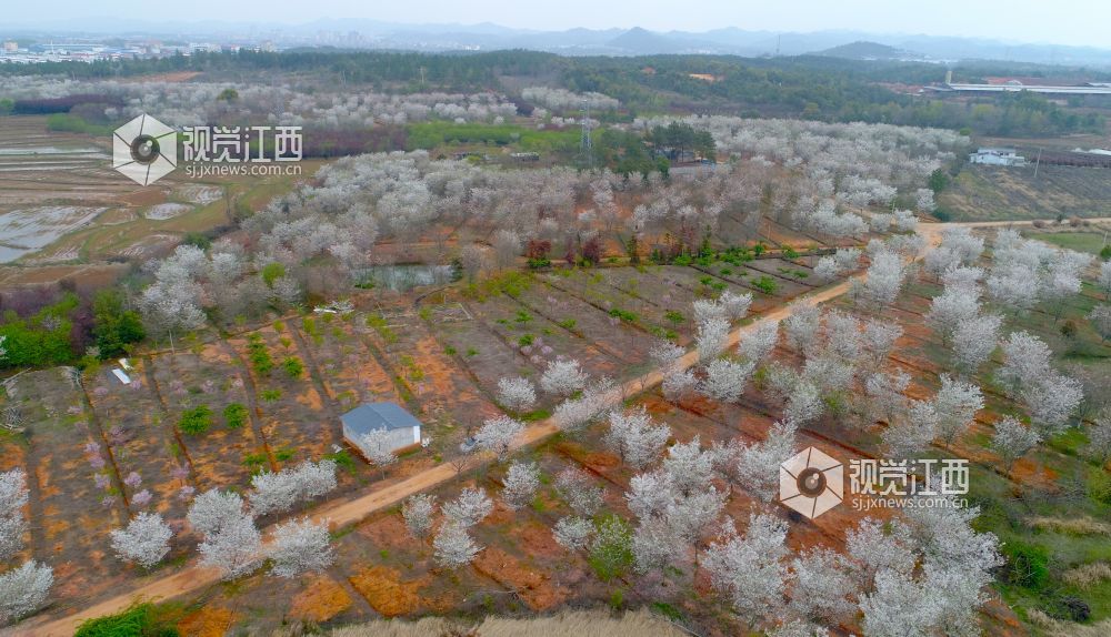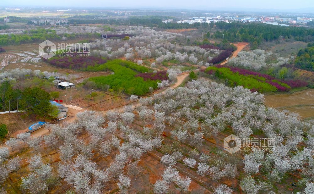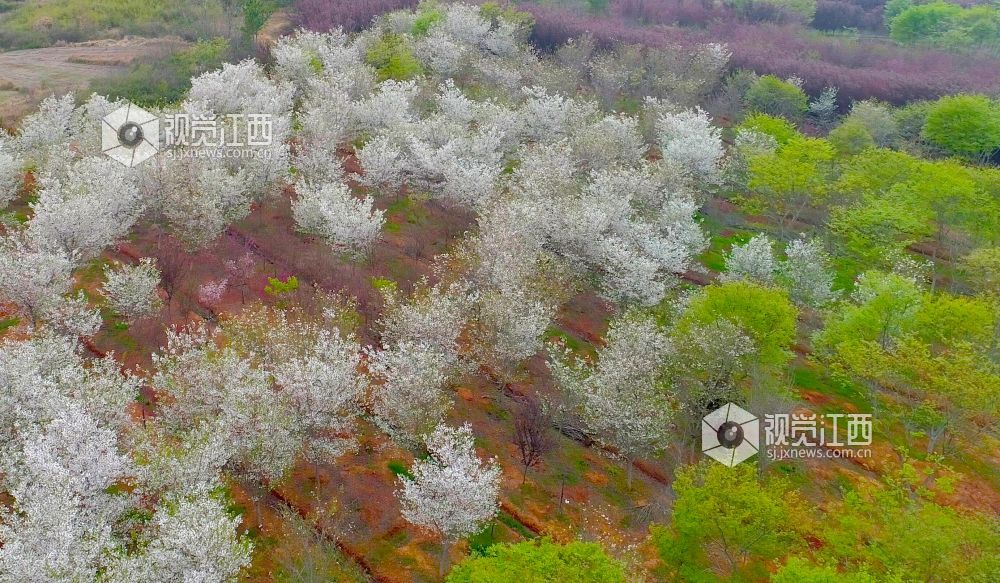 日前,在江西省鄱阳县田畈街镇东湖种植基地千亩樱花竞相开放,芳香扑鼻、诱人陶醉。有红色、绿色、粉色、紫色、白色等品种,高空俯瞰就像一团团云彩散落在人间,把漫山遍野装扮得分外妖娆,五彩斑斓,美不胜收。
