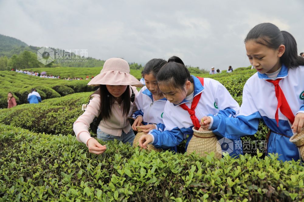 4月14日,江西省莲花县城厢小学五年级400余名学生走进绿意盎然的坊楼镇甘红初心茶园,近距离接触大自然,开启采茶、制茶特色研学之旅。