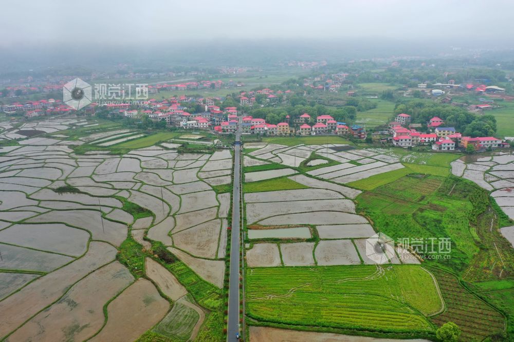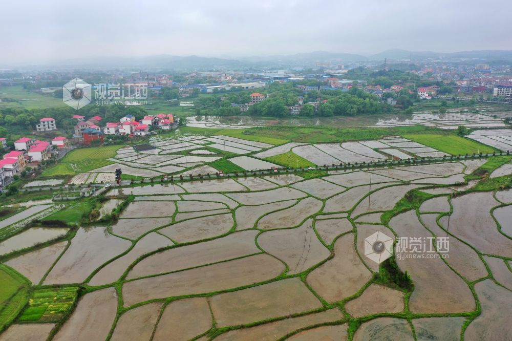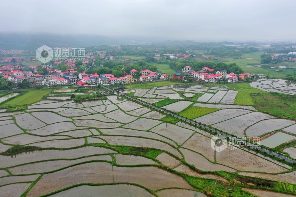 2023年4月14日,江西省萍乡市芦溪县芦溪镇潭田村,片片水田,纵横交错,宛如明镜,构成一幅美丽的乡村画卷。