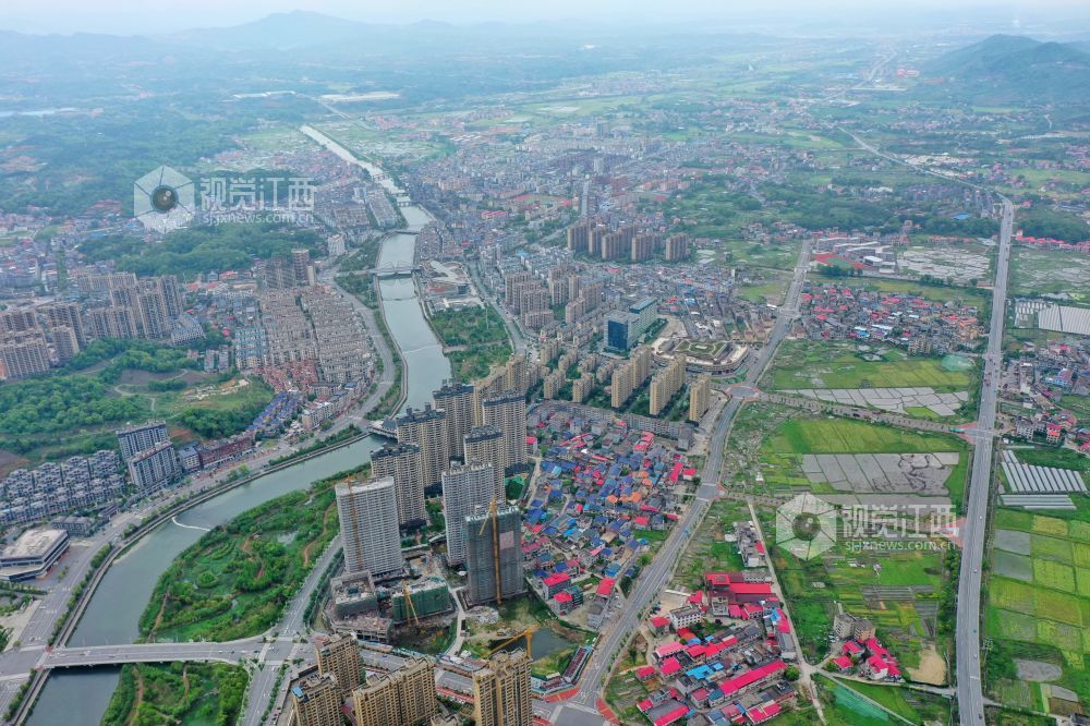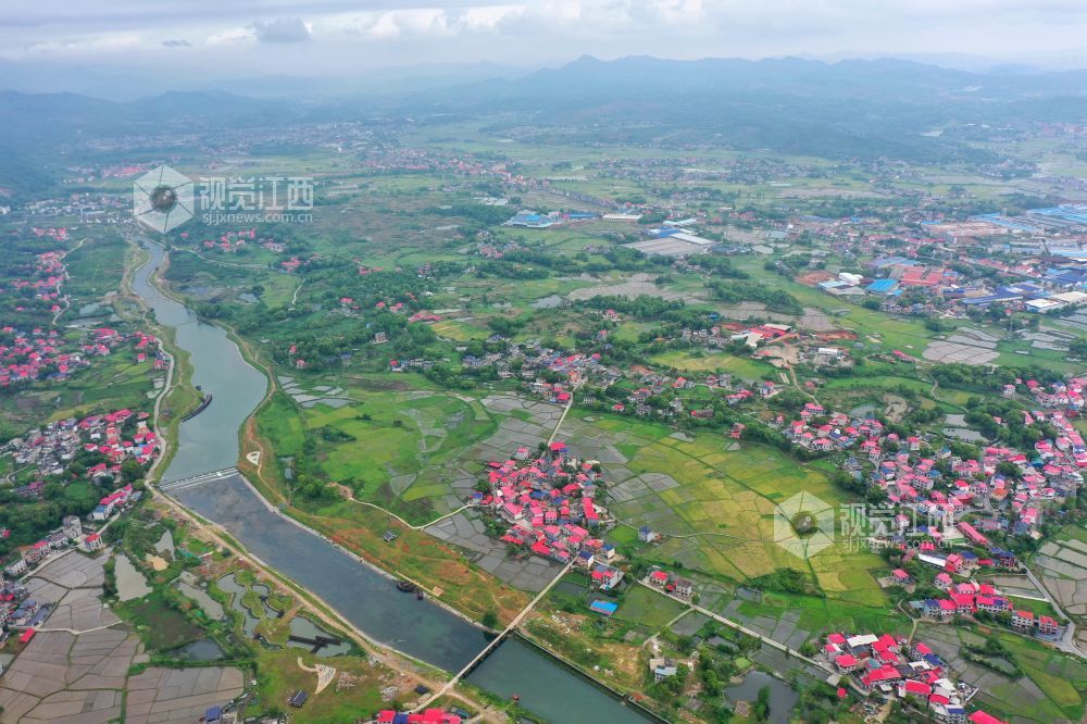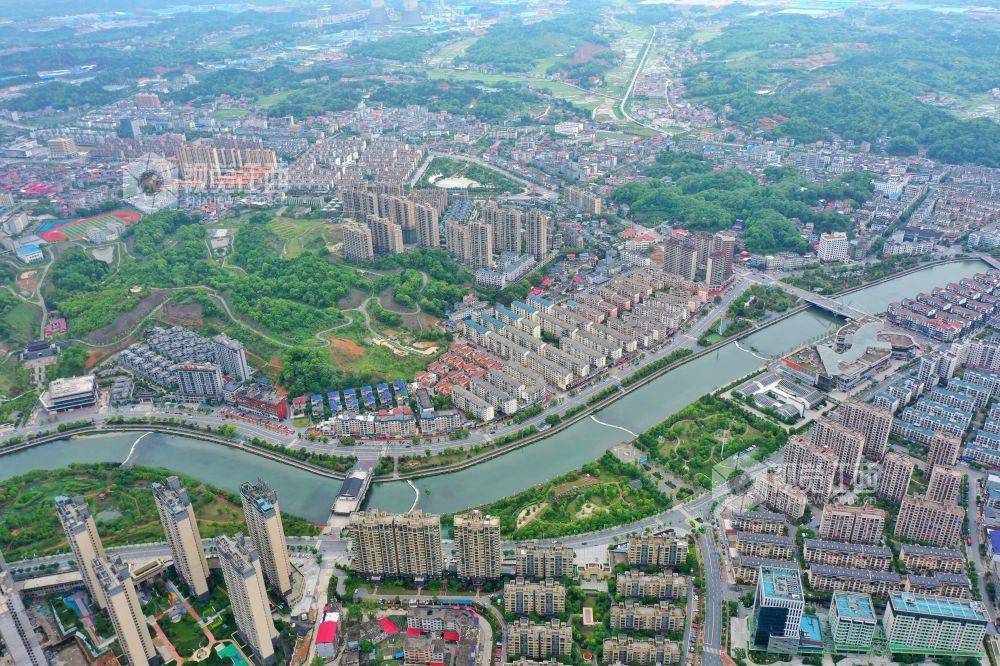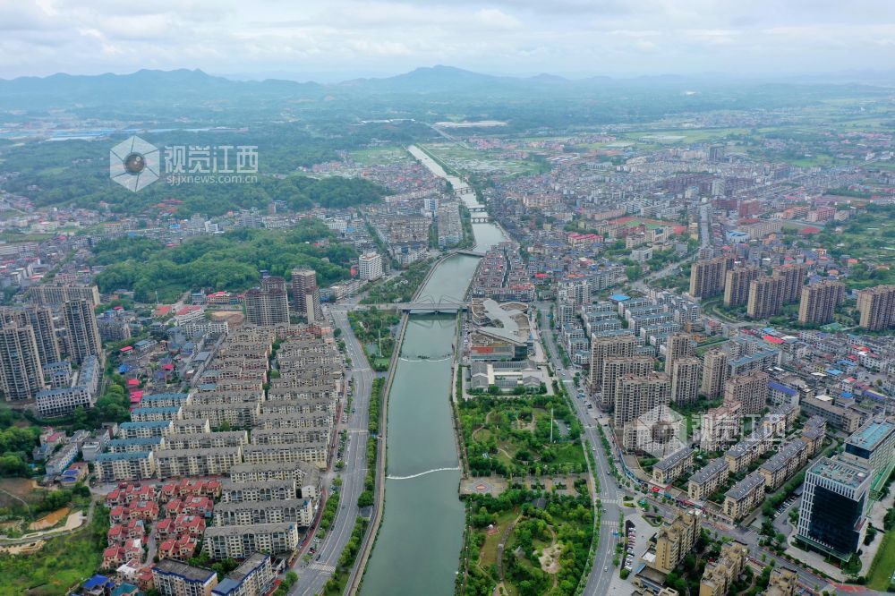 2023年4月19日,俯瞰江西省萍乡市芦溪县改造后的袁河河道河清岸绿、景色秀美。