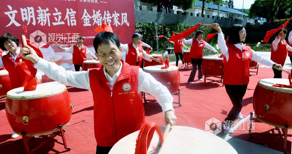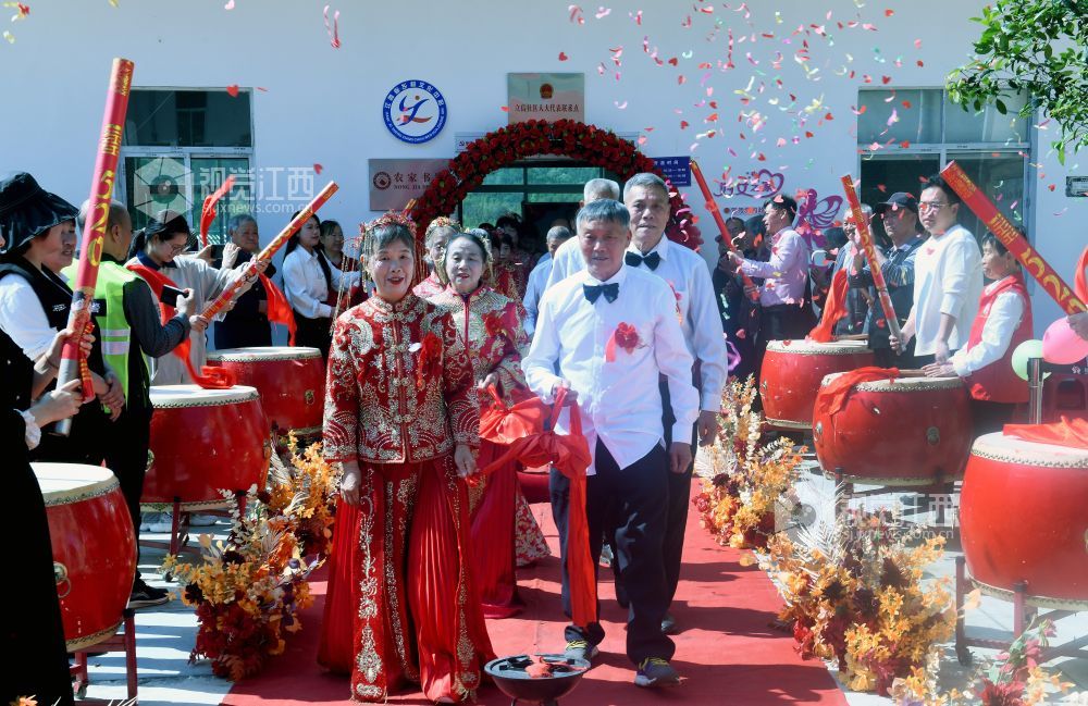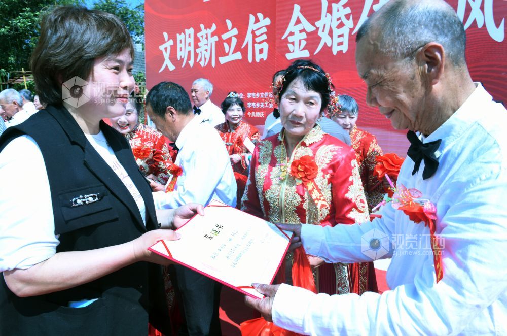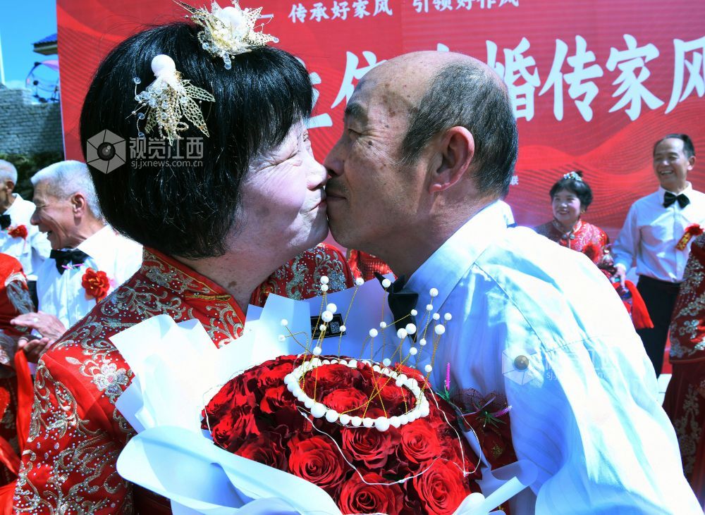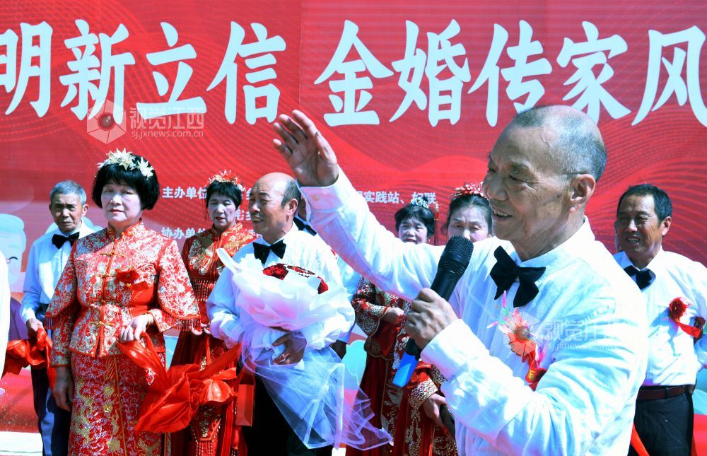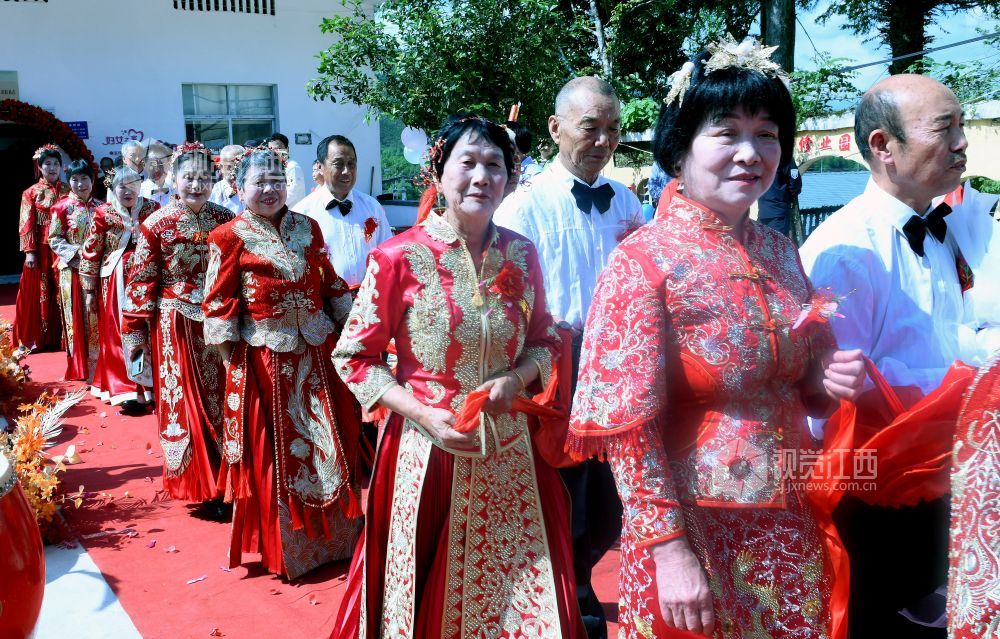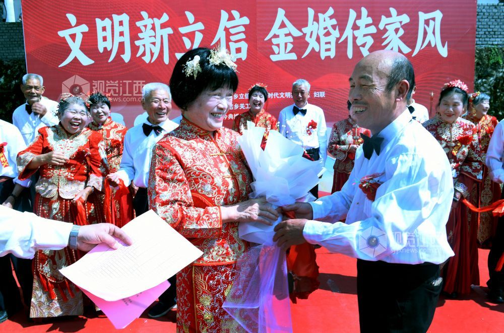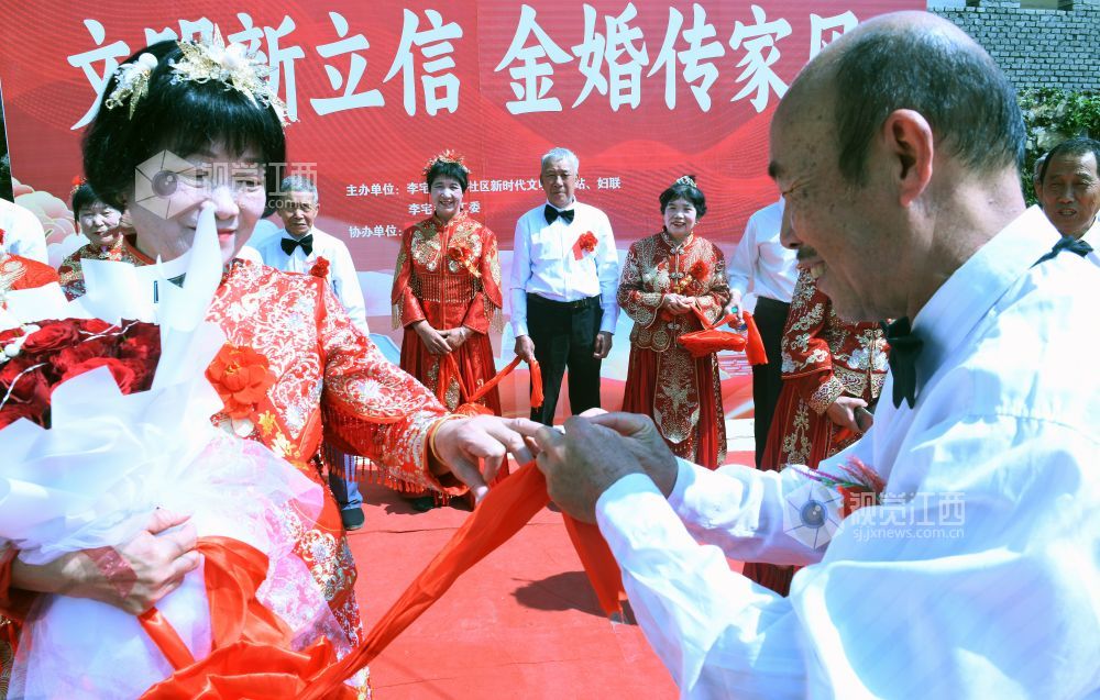 当天,江西省德兴市李宅乡立信社区在乡党委、政府的支持下,首次举办“金婚永相伴,传承好家风”集体金婚庆典,13对古稀老人身着新人礼服,在晚辈的祝福声中喜庆金婚。