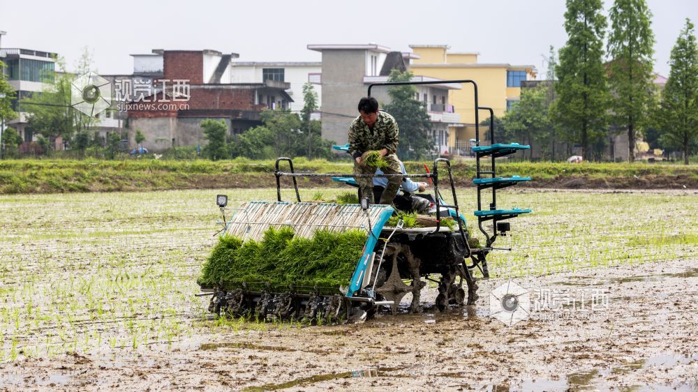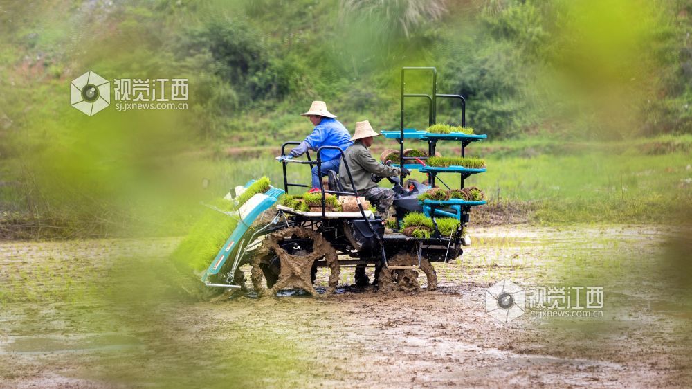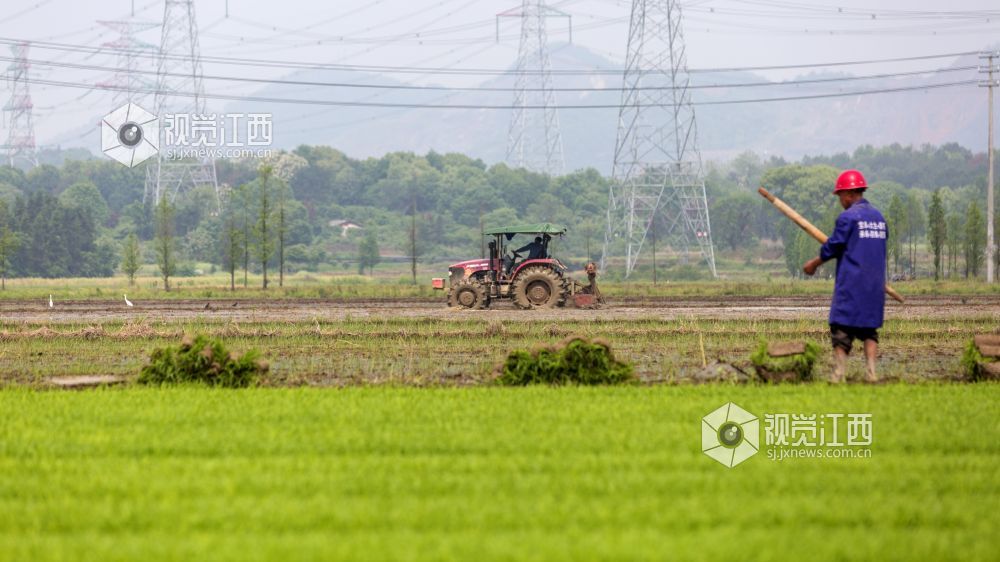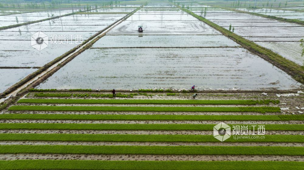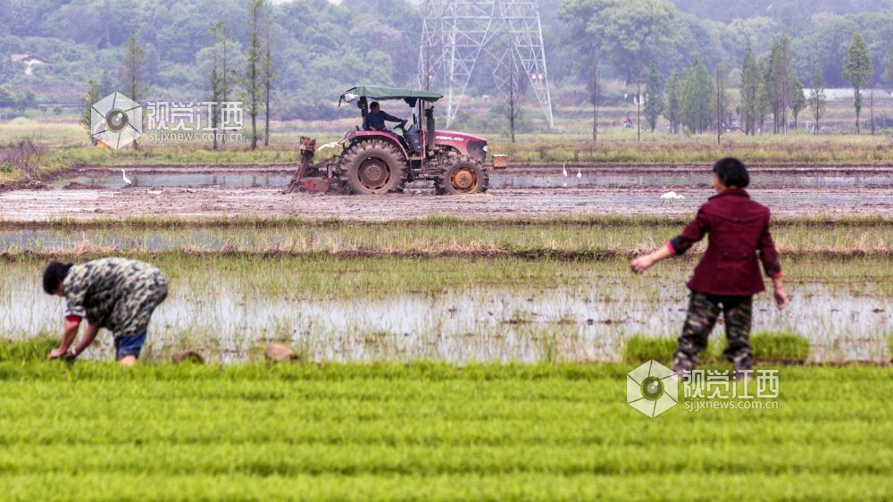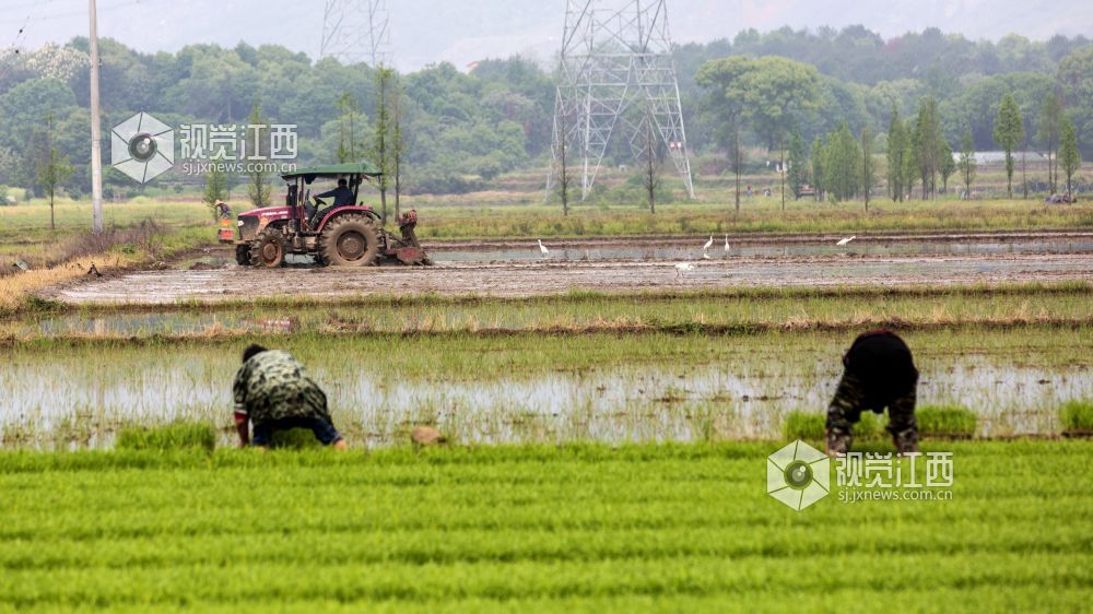 4月20日,在江西省新余市仙女湖区观巢镇共青村、杨家村的田野上,拖拉机在耕地,插秧机在插秧,村民们在忙着拔秧,一群可爱又美丽的白鹭,或整齐排成一排站在田埂上,或全部展开双翅起飞,一下飞到田的这边,一下飞到田那边,一会儿又在田间的上空来回盘旋、飞舞嬉戏,一会儿又旁若无人地在农户的眼前,欢快啄食、跳跃,呈现出人与自然和谐共生的美丽画面。
