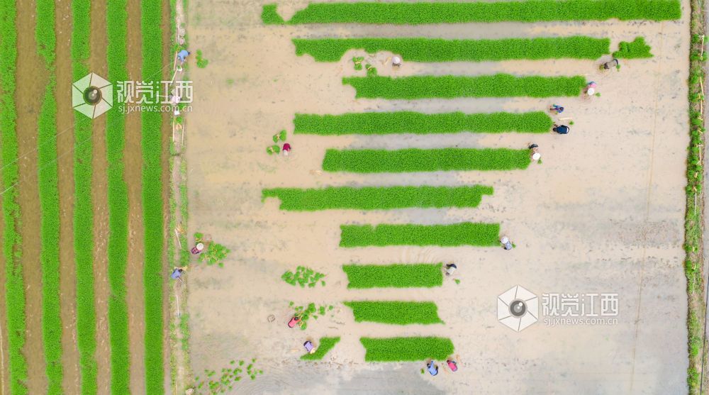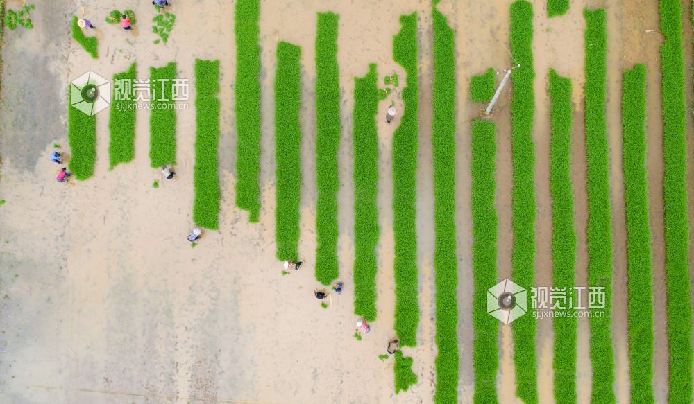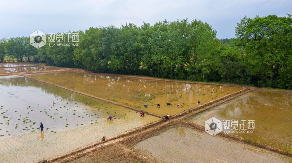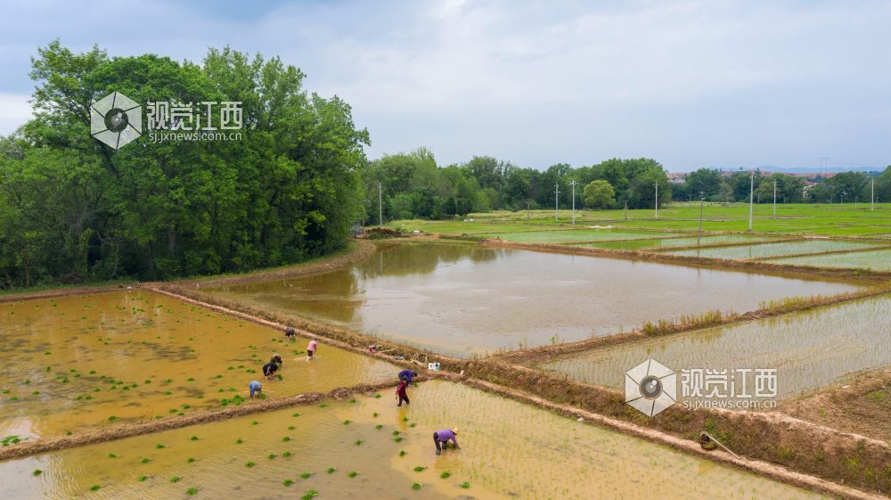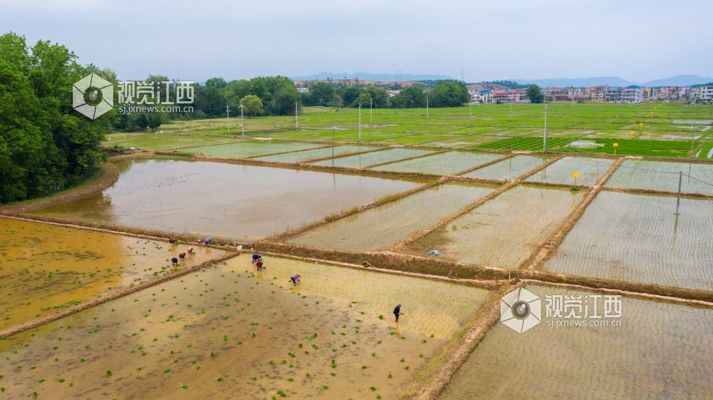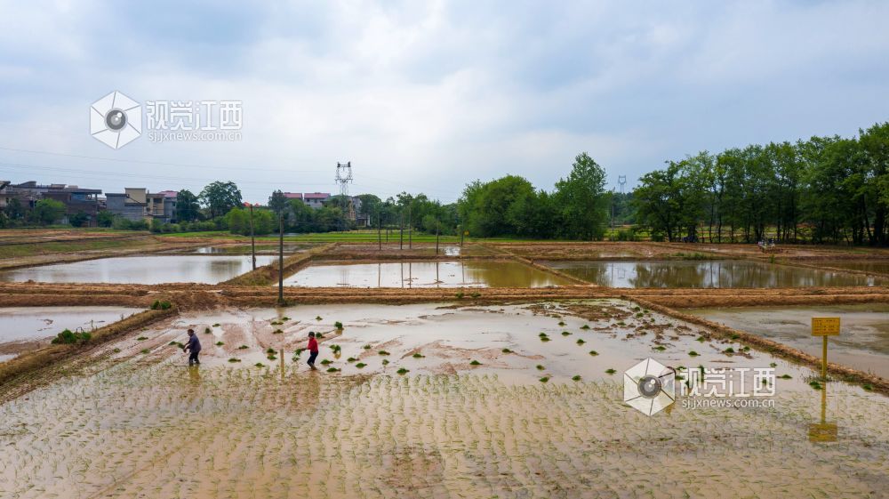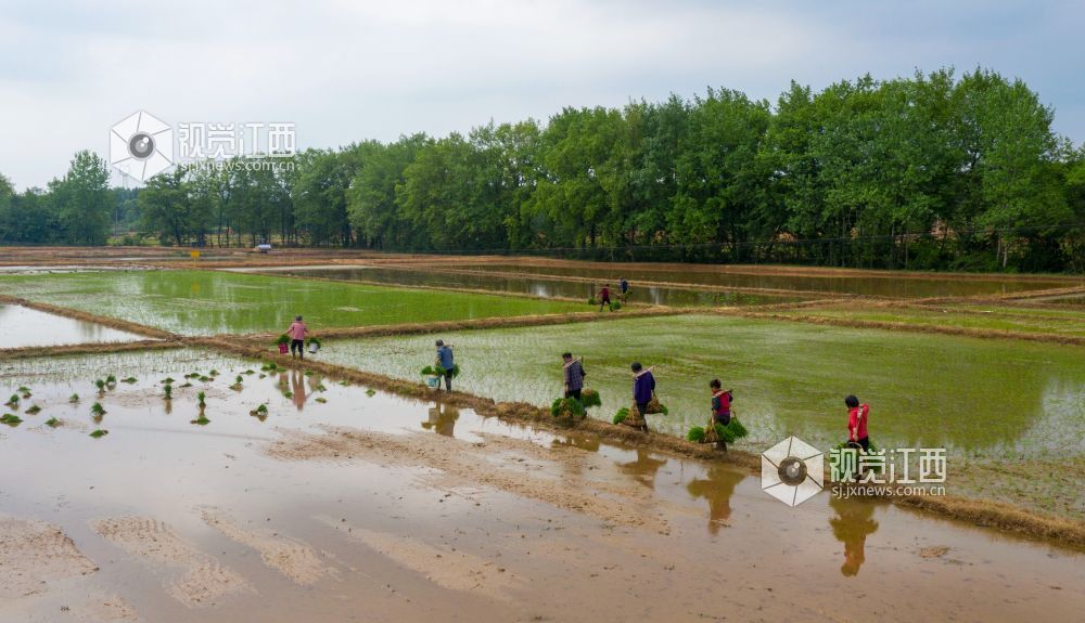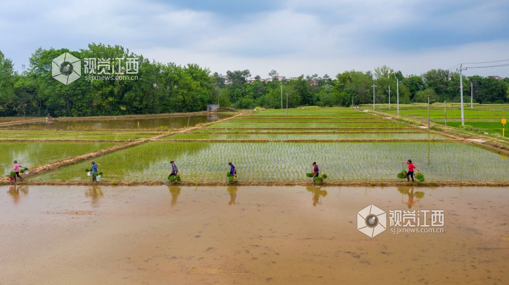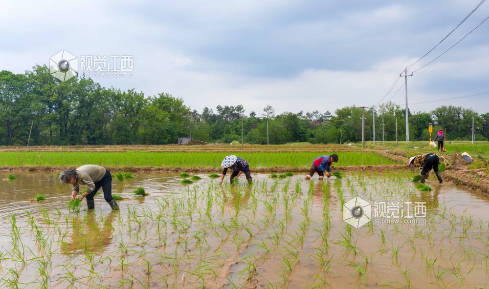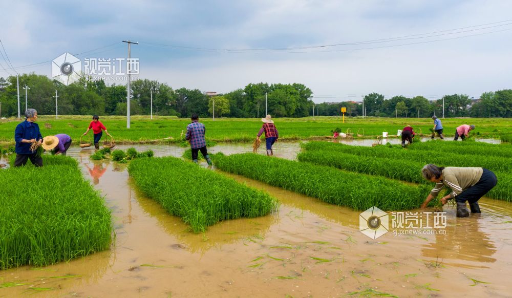 2023年4月21日,江西省吉安市吉水县尚贤乡桥头村,村民正在起秧、插秧,进行早稻生产。