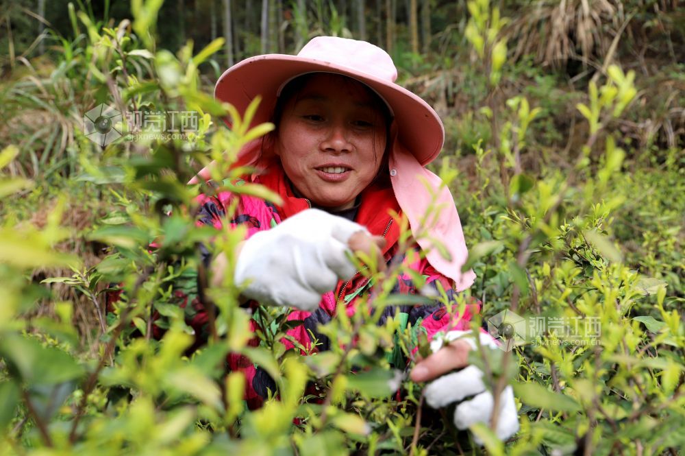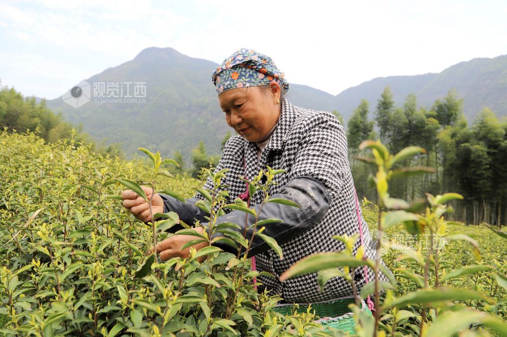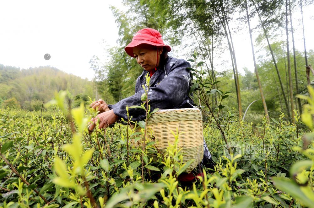 2023年4月24日,江西省吉安市安福县章庄乡湖溪村村民在采茶。