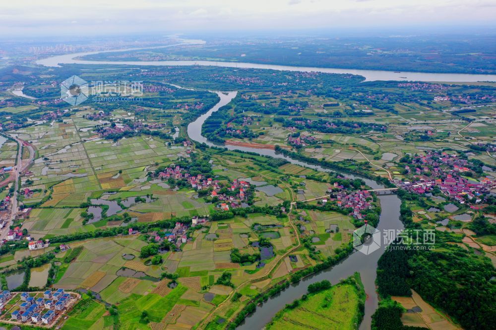 4月25日,在江西省吉安市泰和县马市镇粮食主产区,灌区水系穿越大地田园,助力早稻灌溉。