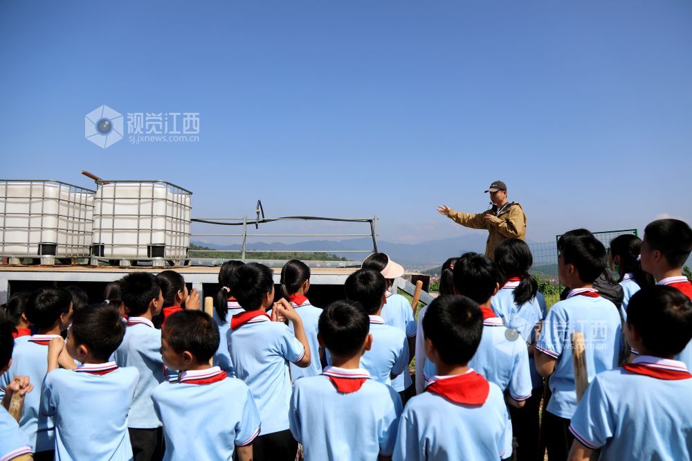 4月26日,五一劳动节前夕,在江西省莲花县湖上乡昌莲生态农场,该乡的小学生正在这里进行劳动教育实践。