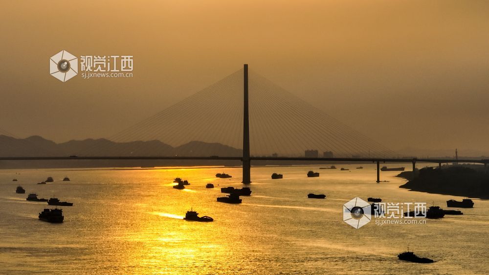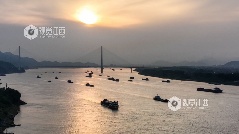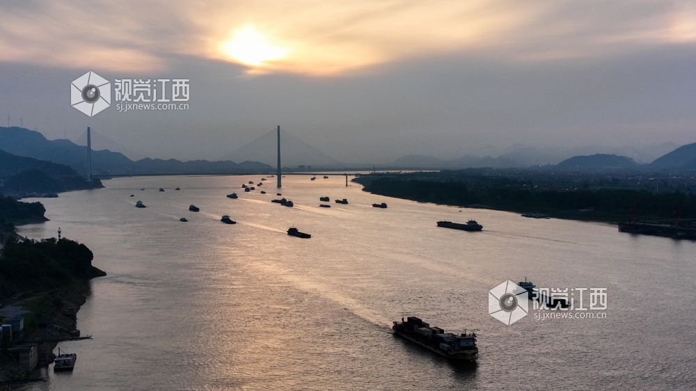2023年4月26日,长江航道江西省九江市瑞昌段,长江江面上运输船只往来穿梭,一片繁忙景象。