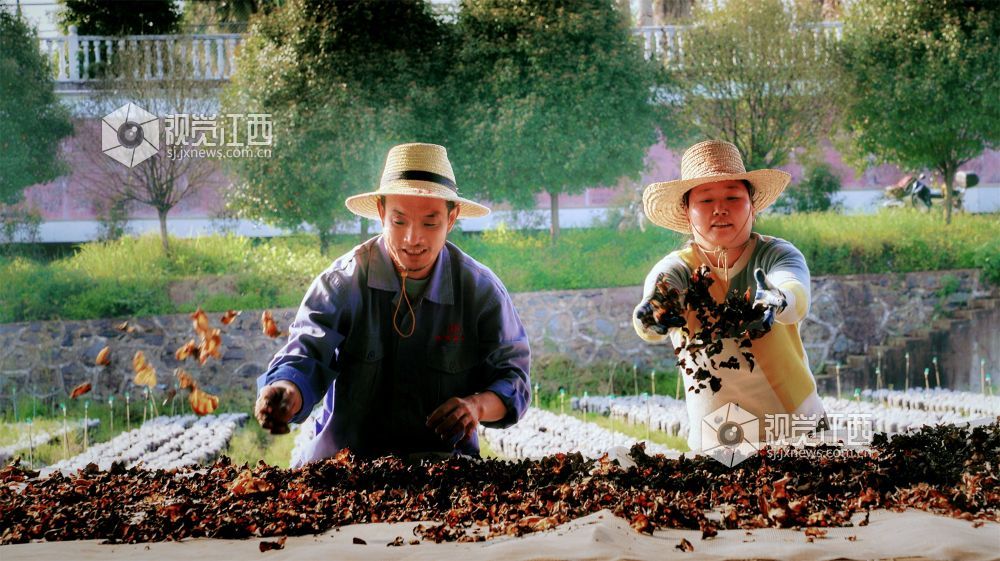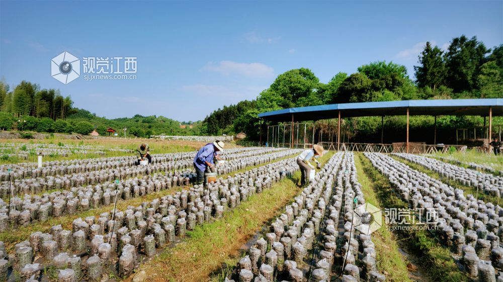 接连几日春雨过后,气候湿润,温度回暖,正是木耳生长的好环境。4月26日,江西新余九龙山乡后元村的木耳种植基地,一排排的菌包整齐摆放,长势喜人,村民正忙着采摘、晾晒,现场一派忙碌的丰收景象。