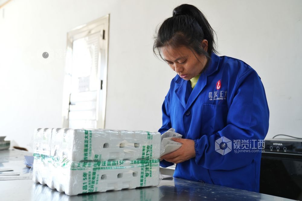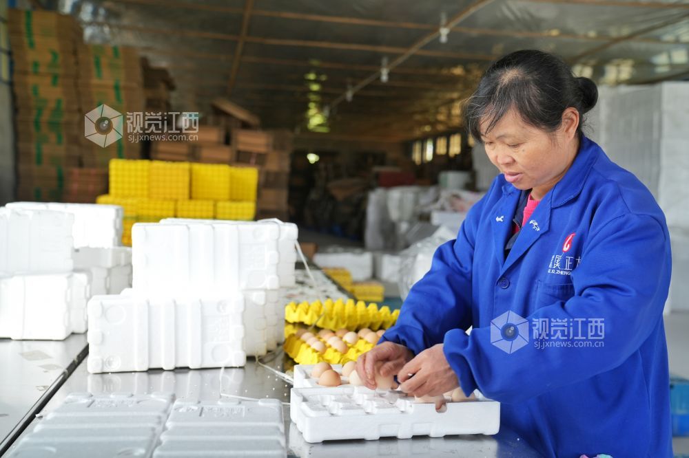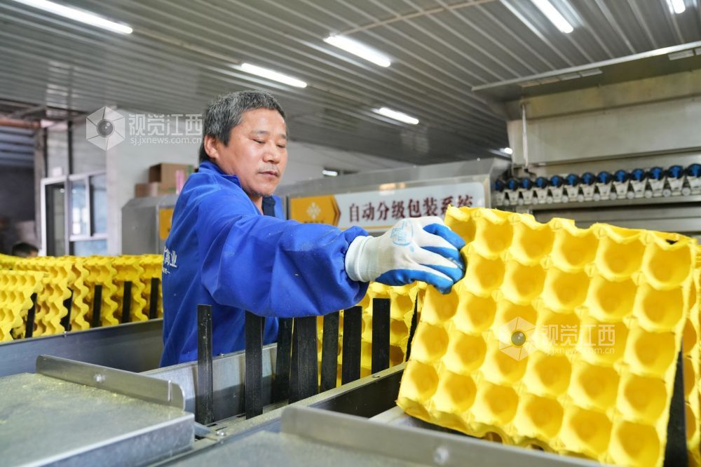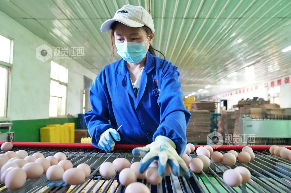 2023年5月1日,“五一”假期在江西省萍乡市芦溪县芦溪镇葛溪正太全自动化蛋鸡养殖基地车间内,工人们正在紧张的工作。