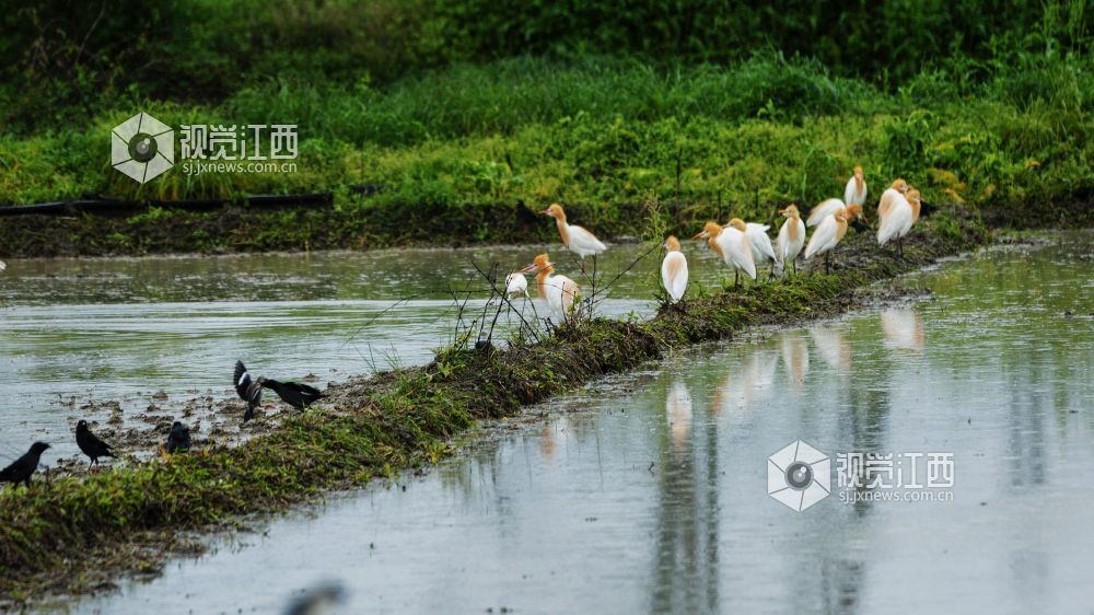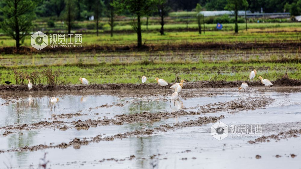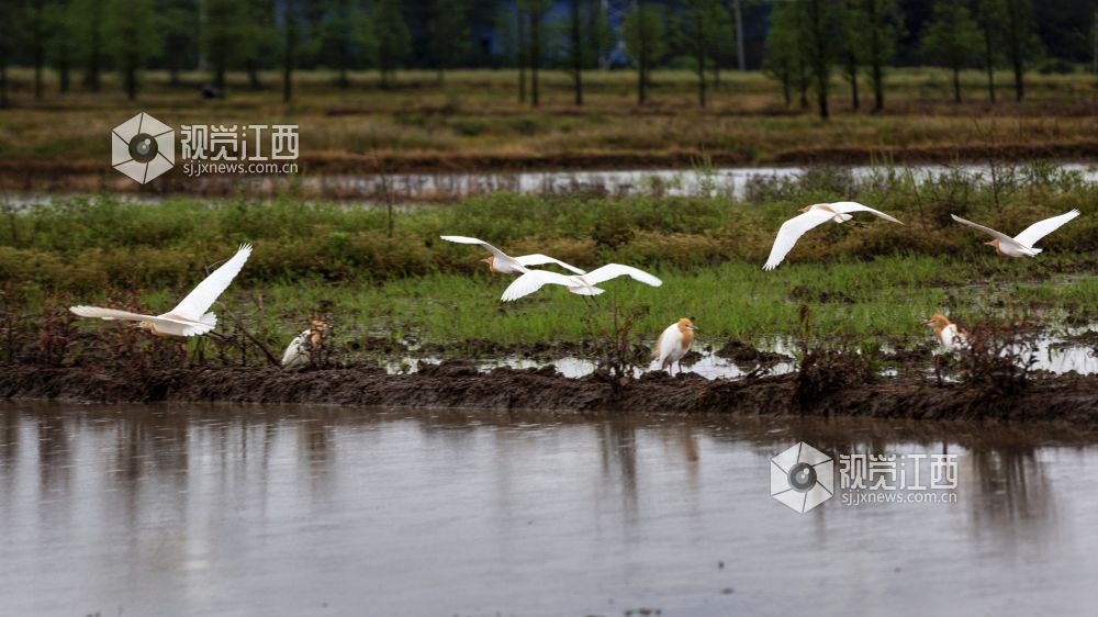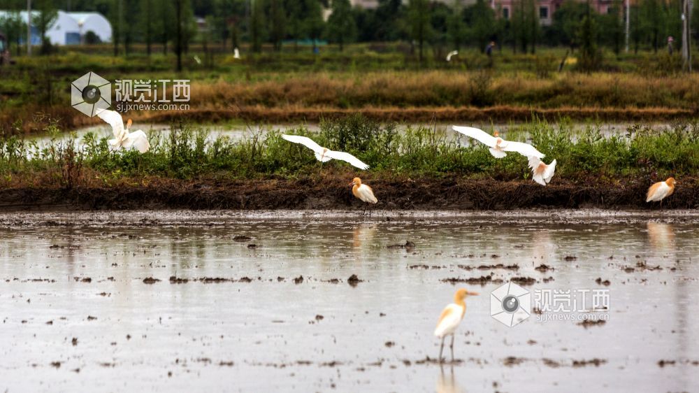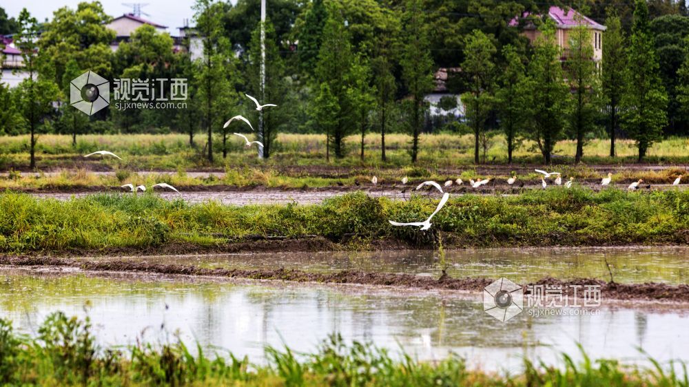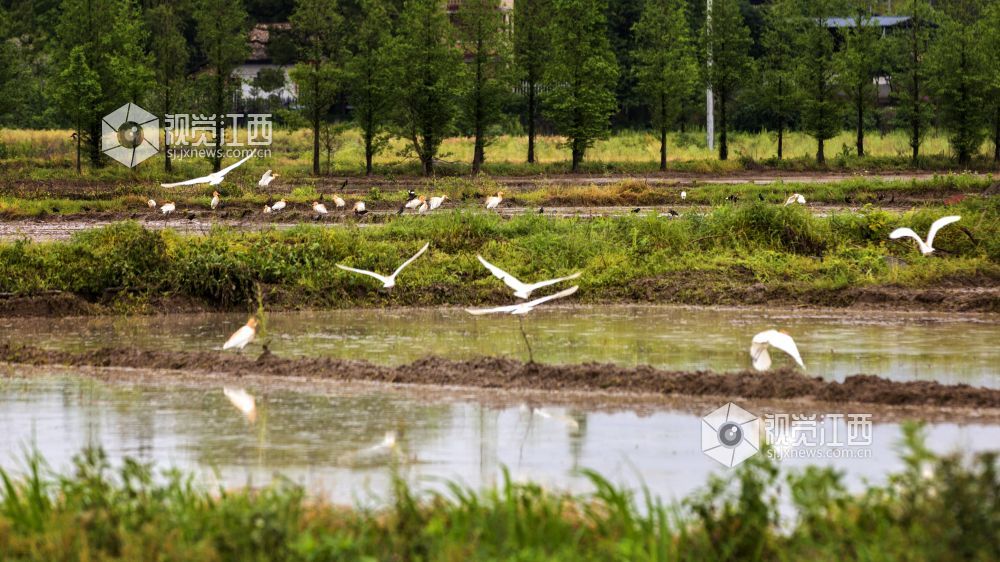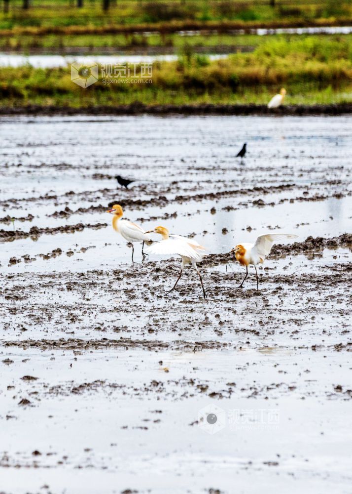 5月2日,在江西新余仙女湖区观巢镇的田间地头,随时可以看见白鹭一会儿翩翩起舞,一会儿栖息觅食,成为乡村里一道靓丽的风景线。
