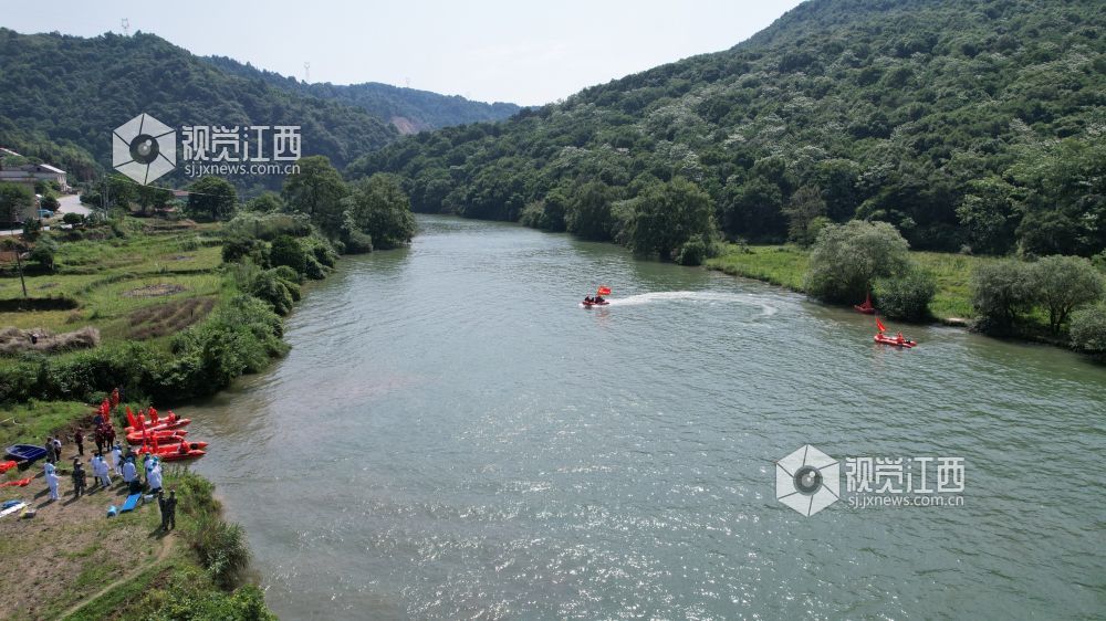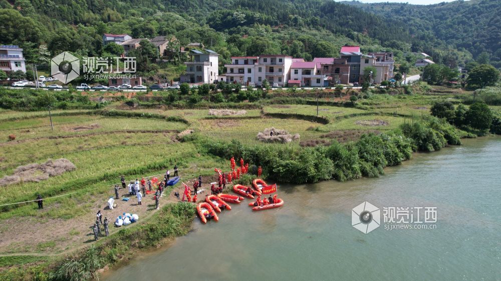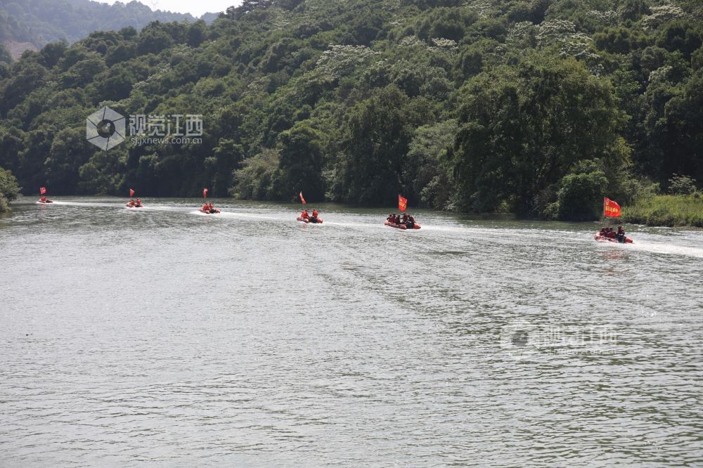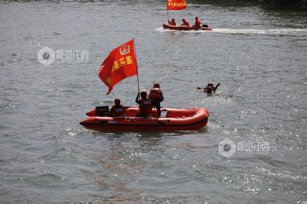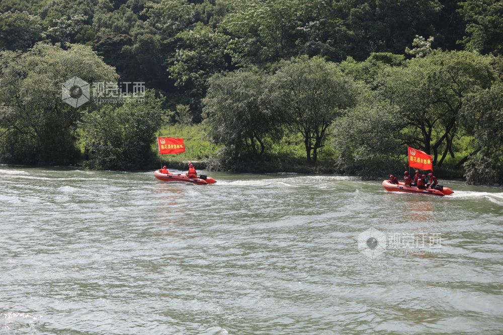 5月9日,江西省莲花县在莲江升坊镇沙屋村砻山口段举行水上应急救援演练。