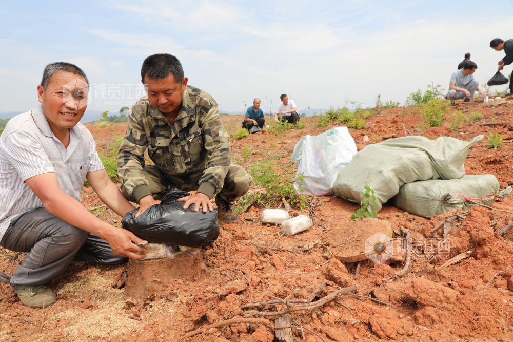 种植现场,村民在技术人员的指导下,严格按照“爬兜、锯兜、消毒,化口、接种、压实”等种植程序进行,确保茯苓快速行菌发孢。袁国银介绍,今年他在泰和县湿地松山场套种丰产优质名贵药材茯苓1.1万亩,带动农户300多户村民就近就业,人均增收5000元以上。