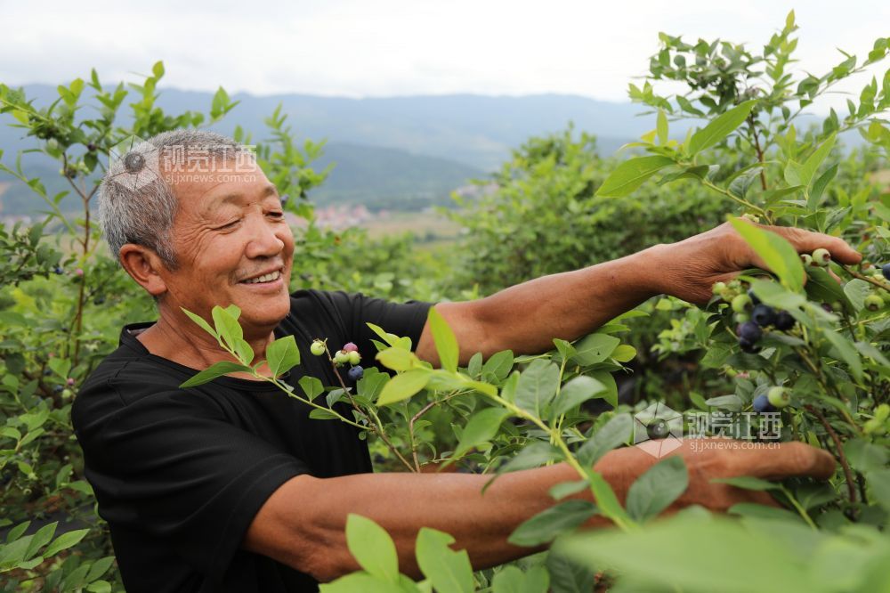 该基地采用合作社+基地+农户的形式种植蓝莓60多亩,预计每亩可产蓝莓700多斤,目前销售形势良好、市场供不应求。