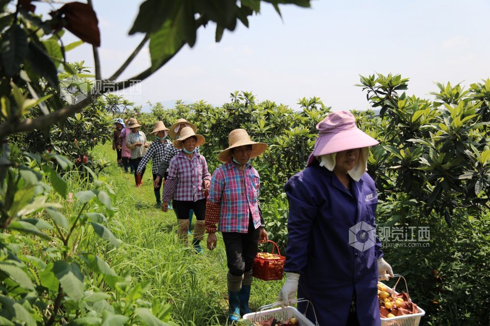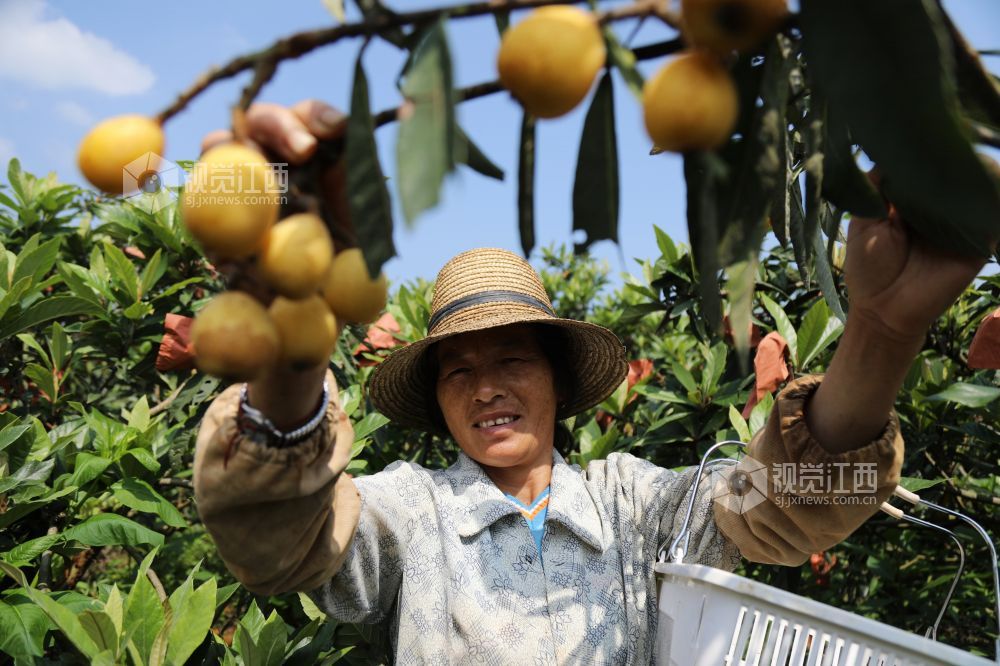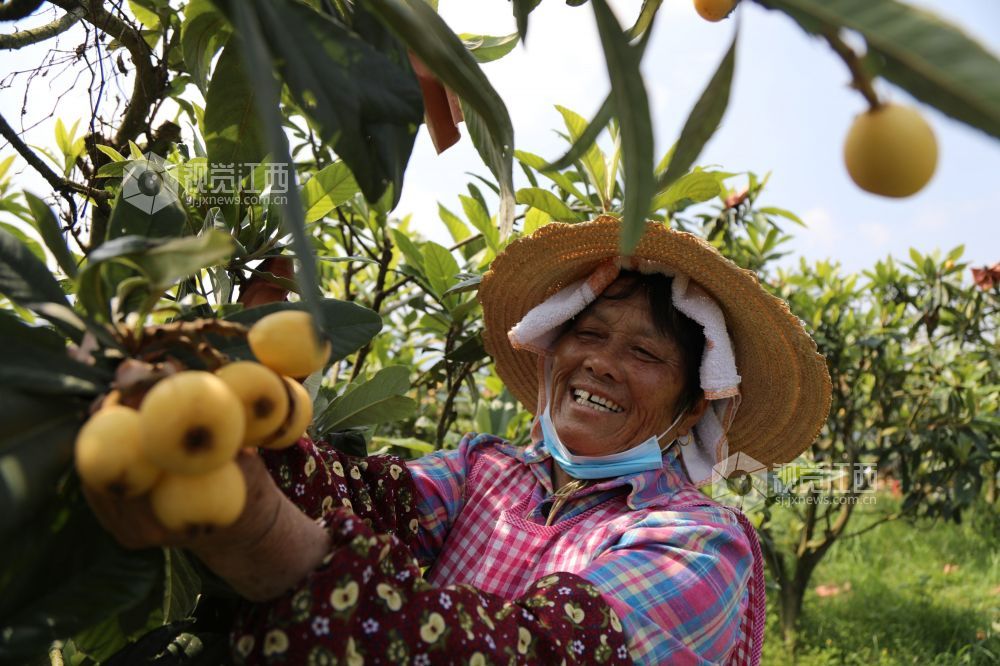 5月19日,在江西省莲花县良坊镇布口村万亩果园枇杷基地,村民抢抓晴好天气,采摘成熟的枇杷。枇杷园里,5000多棵枇杷树郁郁葱葱,沉甸甸的果实挂满枝头,一派丰收的景象。采摘的村民将成熟的枇杷采摘下来,放入篮子里,然后挑选装箱,准备销往浙江、江苏等沿海城市。