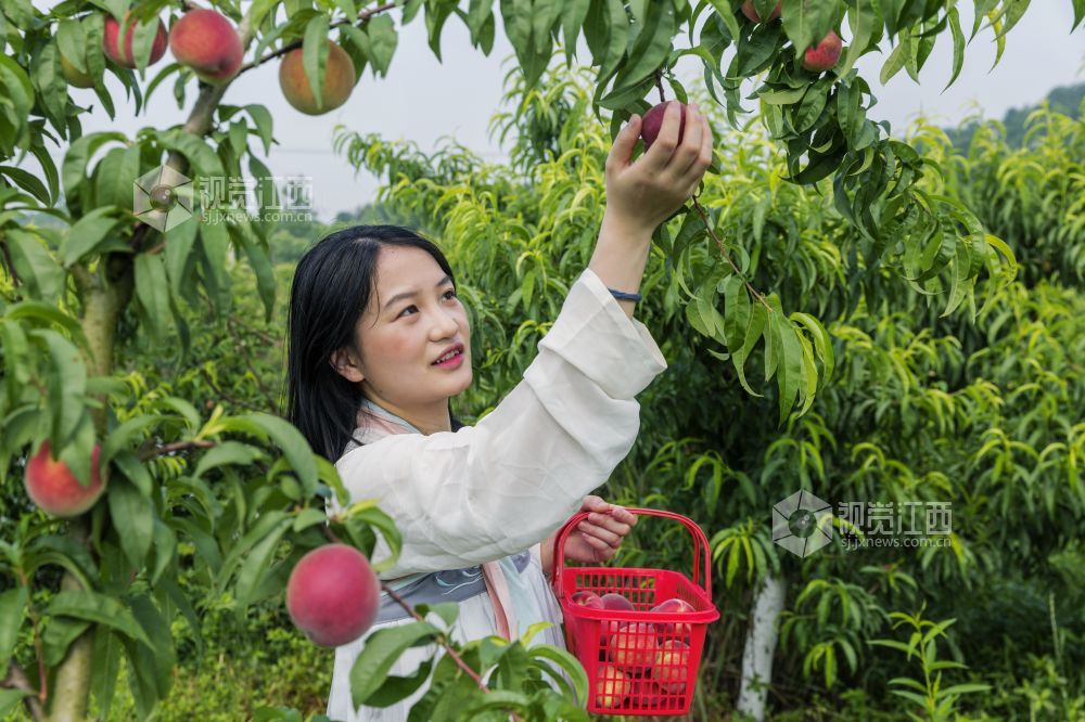 5月19日,在江西省新余市仙女湖区观巢镇杨家村委新田村的广来果园里,200余亩水蜜桃喜获丰收,吸引了乡村游的市民们进园采摘、尝鲜体验。