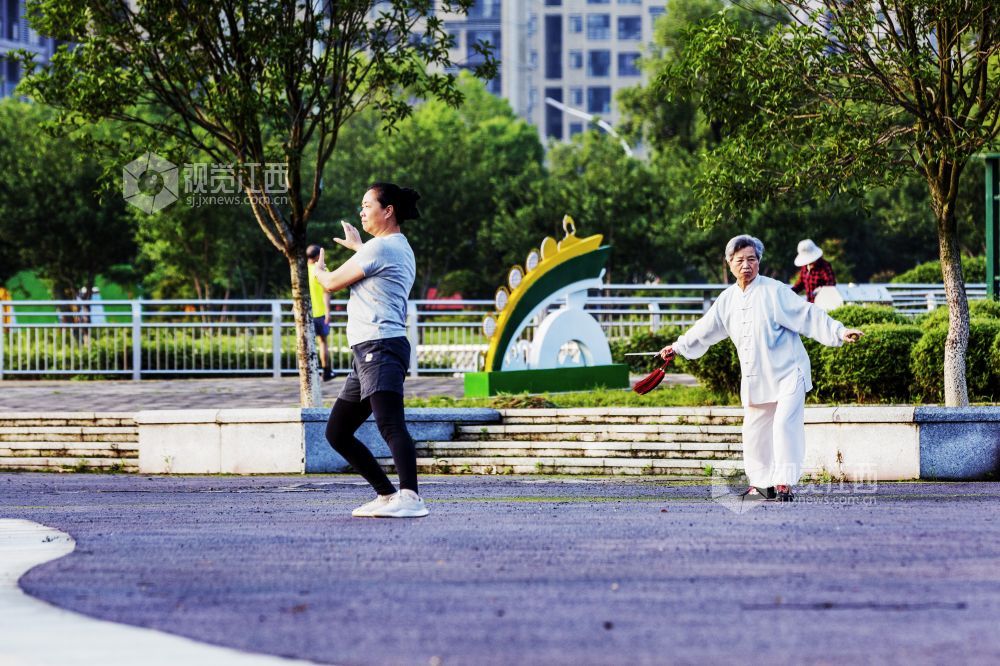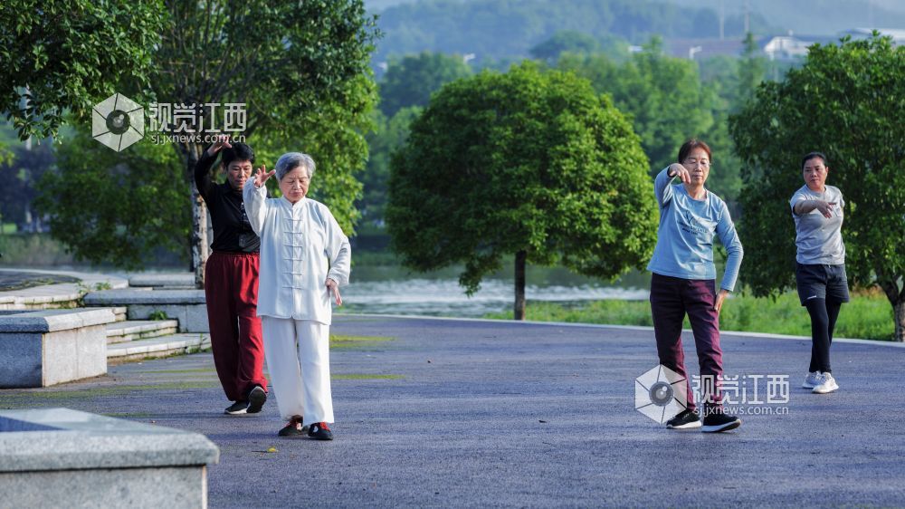 5月23日清晨,走进江西省新余市孔目江国家湿地公园,初夏的阳光照射在空气清新、树木葱茏、干净整洁的公园里,市民们有的在跑步,有的在健身器材上锻炼,有的在跳舞,有的在练太极,??形成了人人参与健身,共享美好生活的幸福场景。