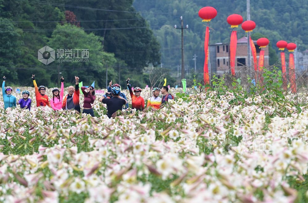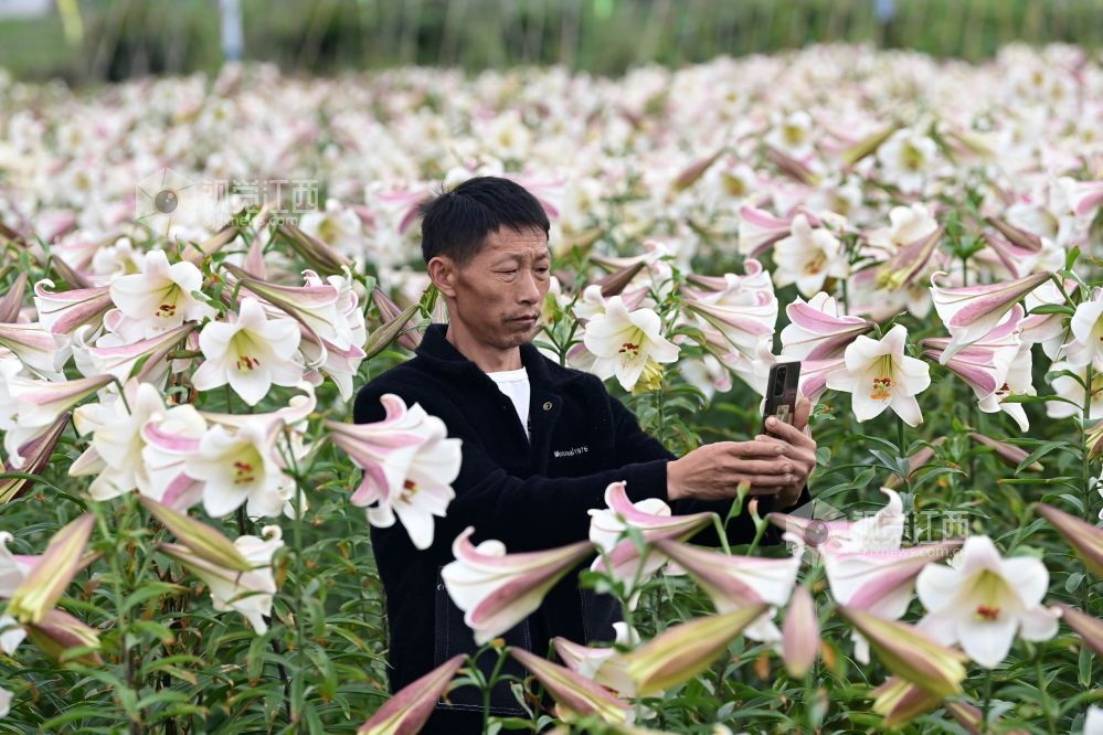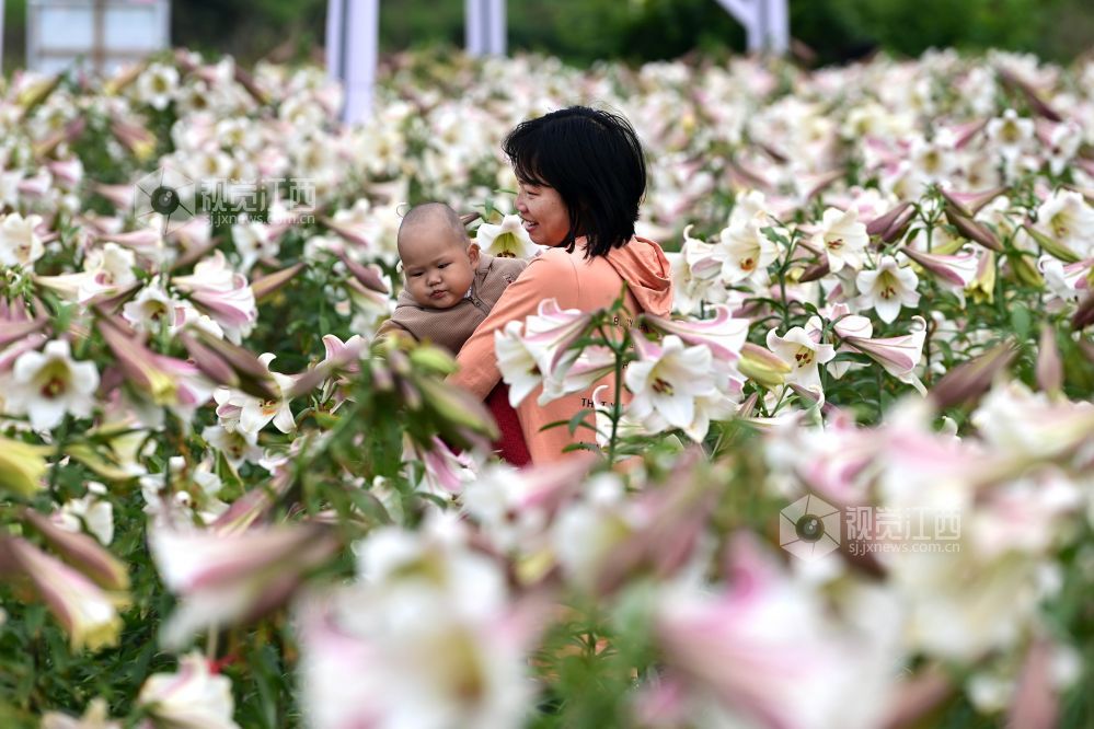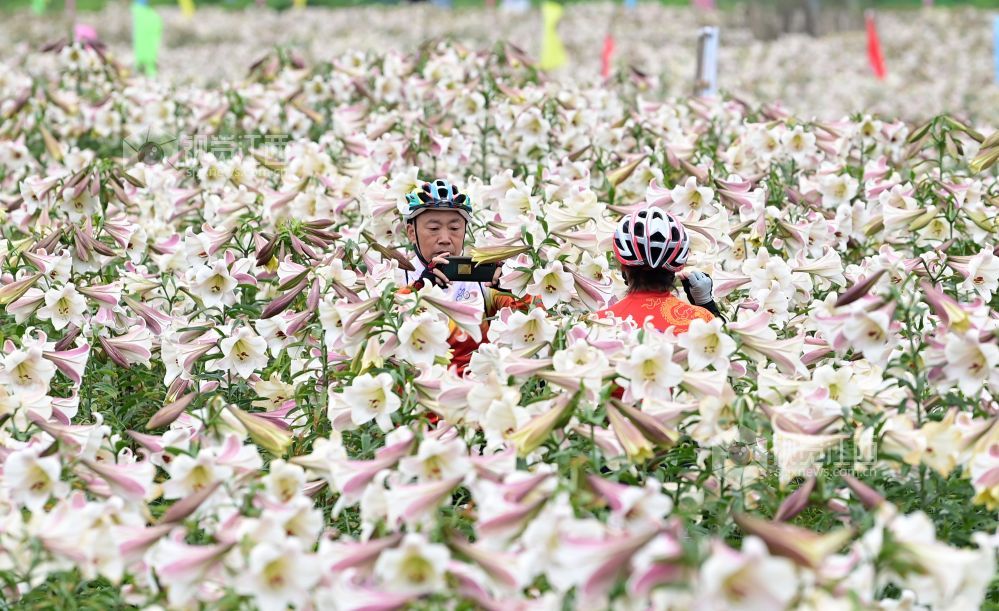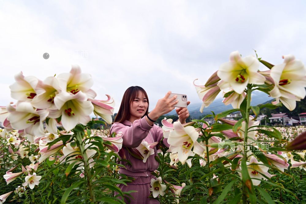 2023年5月23日,游客在江西省宜春市万载县白水乡文义村百合园里赏花游玩。5月中下旬,是百合花盛开的季节,“中国百合之乡”江西省宜春市万载县白水乡600多亩百合花盛开,鲜艳高雅艳丽、清香扑鼻,呈现出一派靓丽的乡村田园风光景象,吸引了全国各地的游客前往观赏。