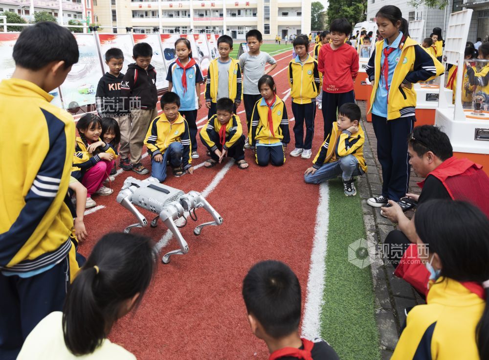 5月25日,江西省新余市科技馆大篷车驶进了分宜县洋江中心学校。大篷车载着科普展品、科普展板、机器人机器狗、 V R 体验、无人机飞行等内容,涉及光能、电能、磁能等学科,在科普志愿者的讲解中,同学们参与动手、动脑体验探索着每件展品的奥秘,感受科学的神奇与魅力。通过与科技零距离接触,培养和激发他们学科学、爱科学的兴趣和热情,引领他们科技创新意识和科技创新能力,做新时代科学少年。