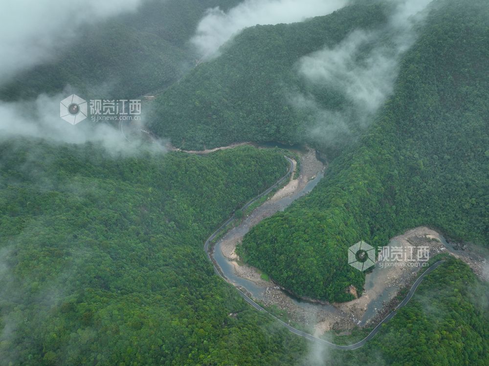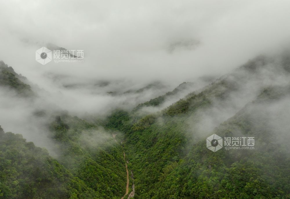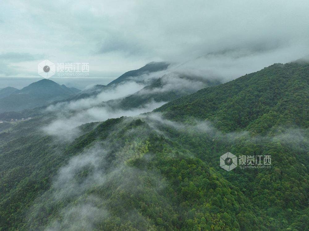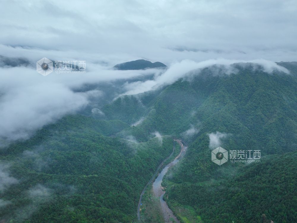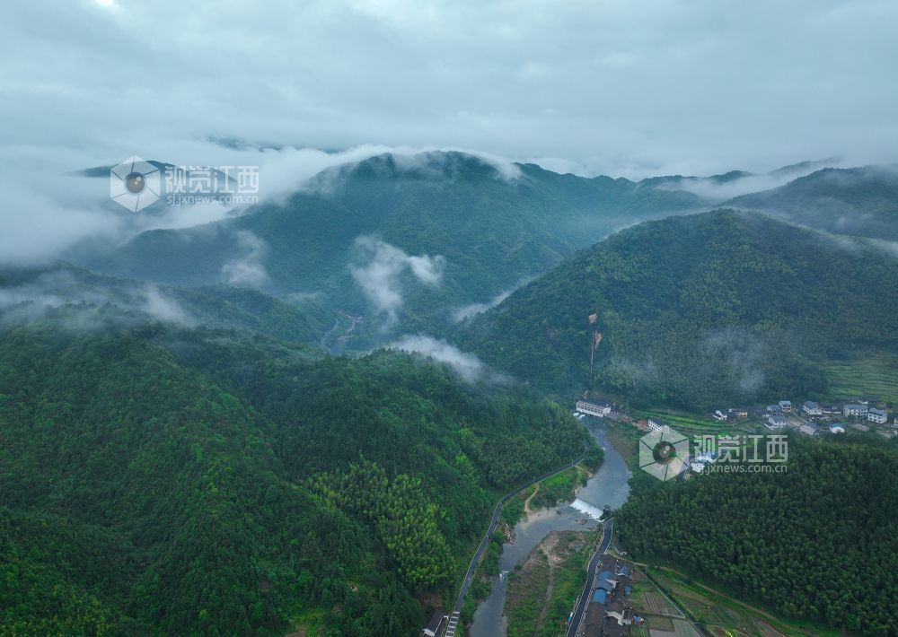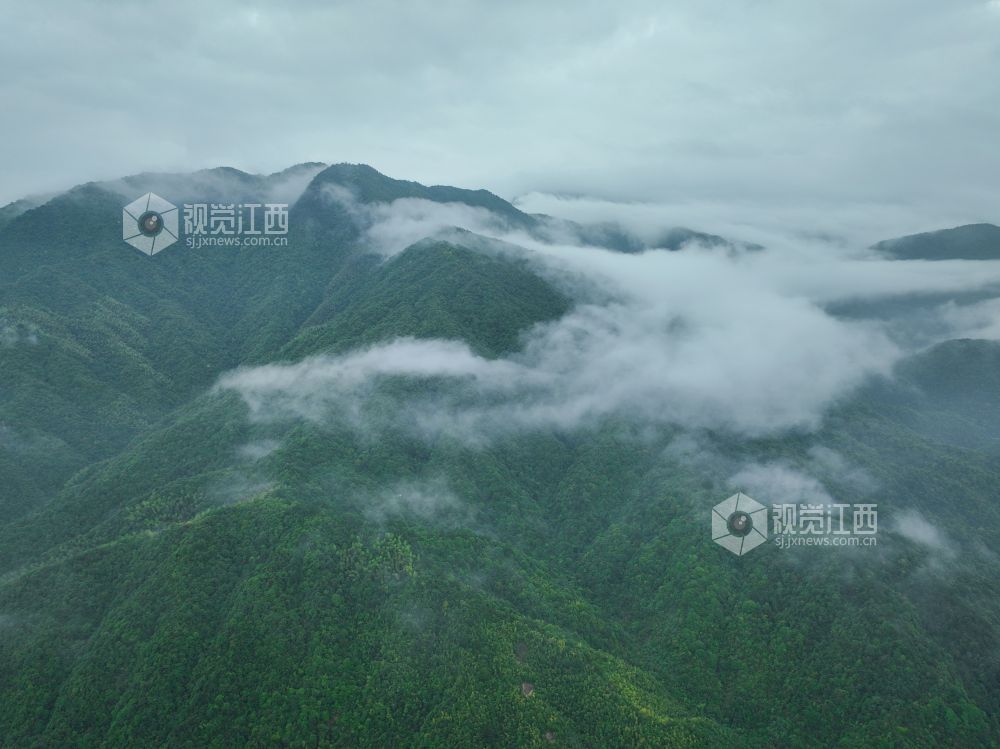 2023年5月24日,航拍江西省上饶市铅山县天柱山乡,云雾缭绕,宛如仙境。大雨过后,山村中升起阵阵云雾,乡村、田园、山峰相互辉映,秀美如画。