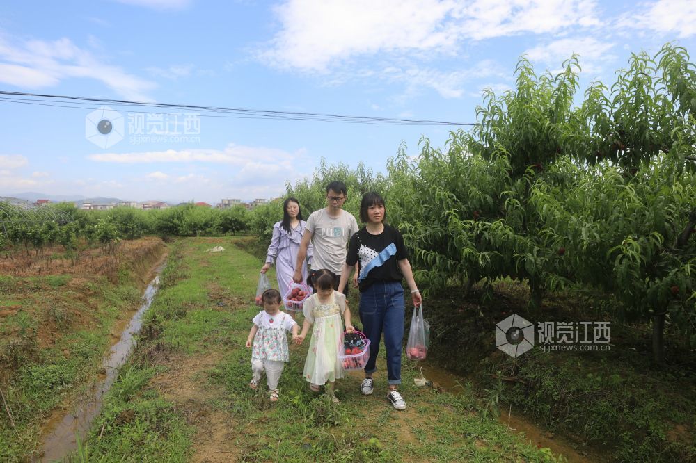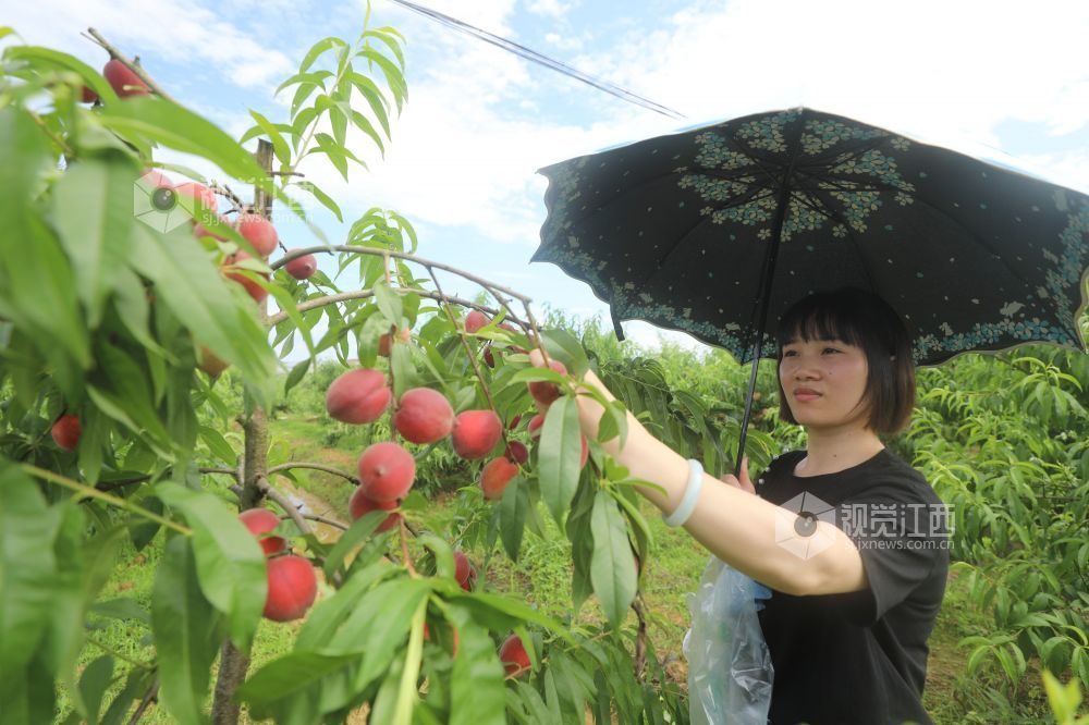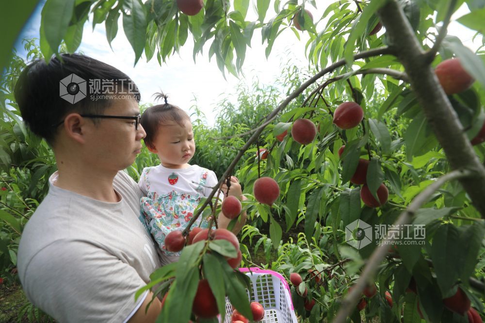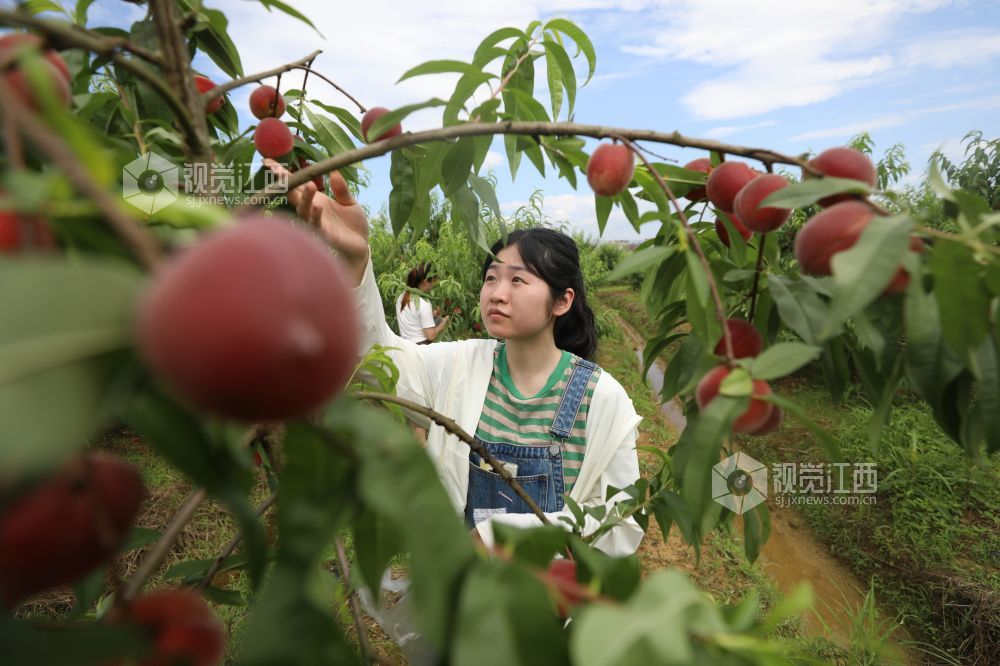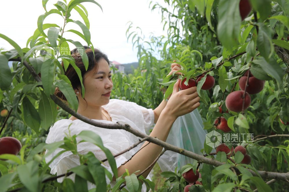 5月27日,在江西省莲花县升坊镇瑞和农场蜜桃基地,红红的春雪蜜桃挂满枝头,游客穿梭其间,不停采摘,享受采摘乐趣。近年来莲花县充分利用当地气候、生态优势,大力发展果树种植,通过赏花、采摘带动乡村旅游发展,助力乡村振兴。