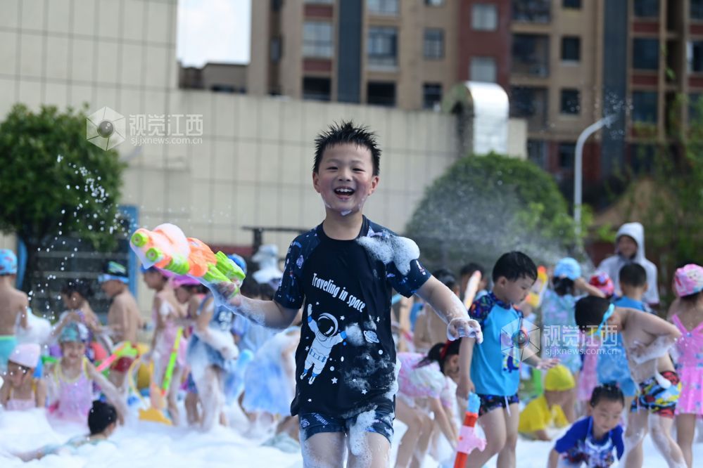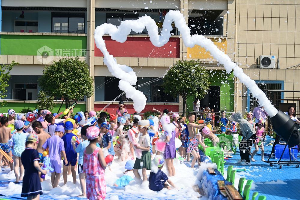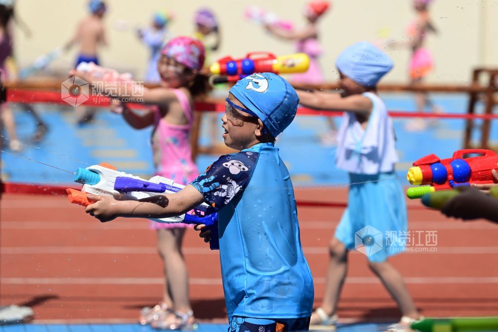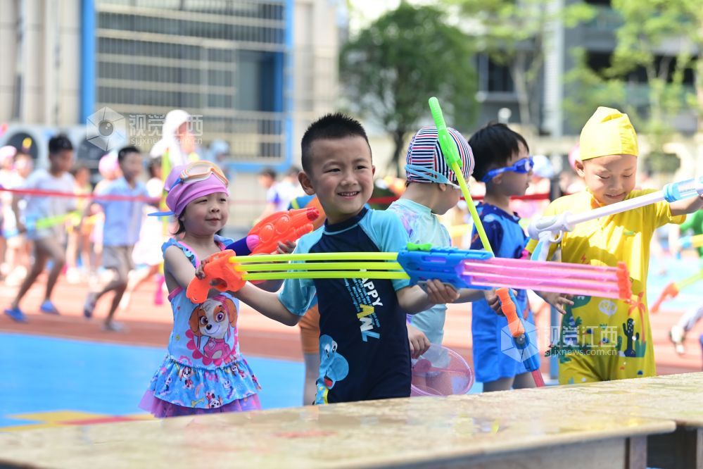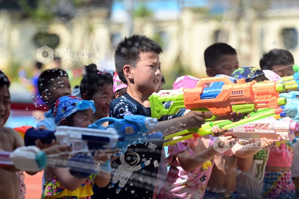 2023年5月29日,江西省宜春市万载县江工幼儿园的小朋友们正在“萌娃大作战 玩水乐翻天”活动中尽情玩耍。喜迎即将到来的“六一”国际儿童节。