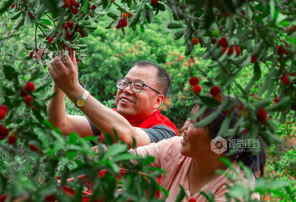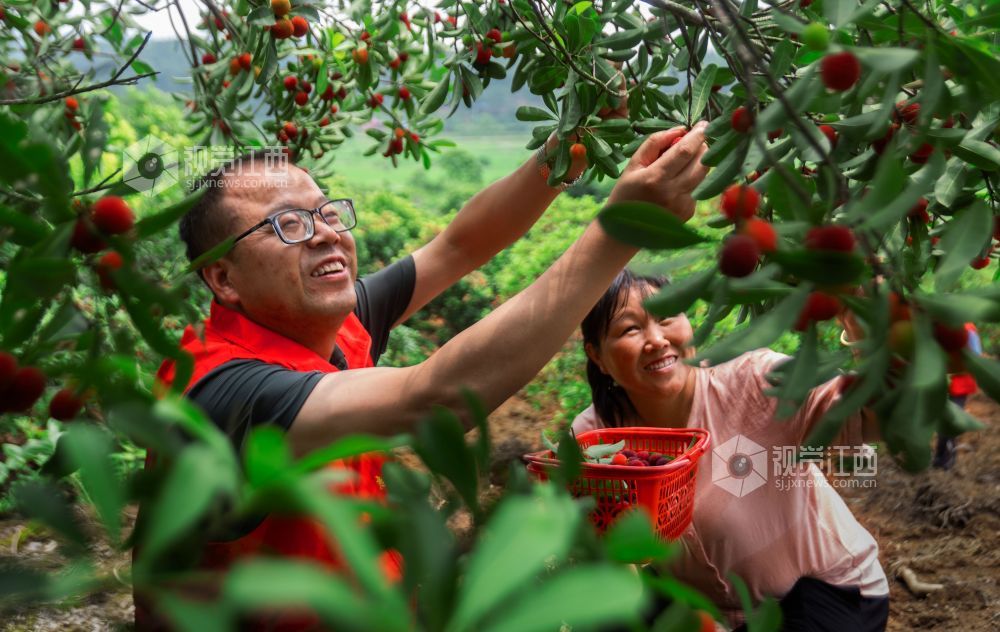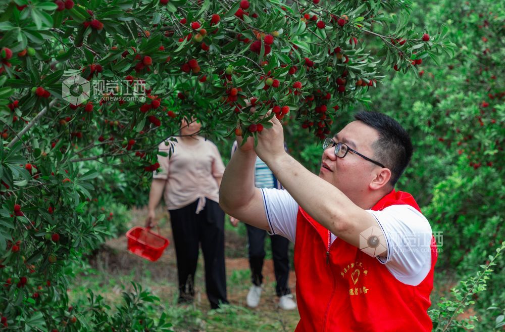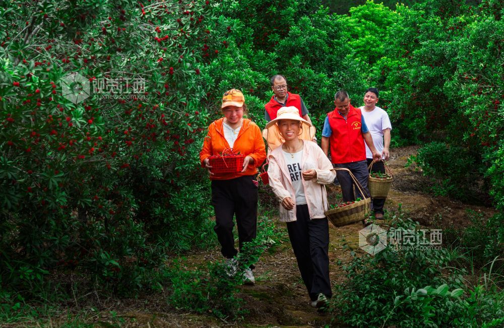 5月31日,眼下正值杨梅成熟采摘旺季,在江西省吉安市永新县芦溪乡平丰村杨梅基地,驻村帮扶工作队组织志愿者,帮助村民采摘杨梅,一派丰收的喜人景象。近年来,江西省永新县芦溪乡结合乡村振兴、秀美乡村建设,因地制宜发展杨梅、甜叶菊、白茶等绿色产业,让绿色产业成为当地农民致富的“绿色银行”,助力乡村振兴。