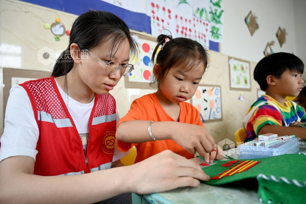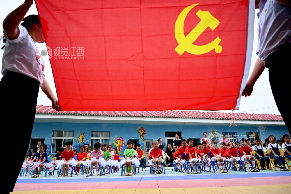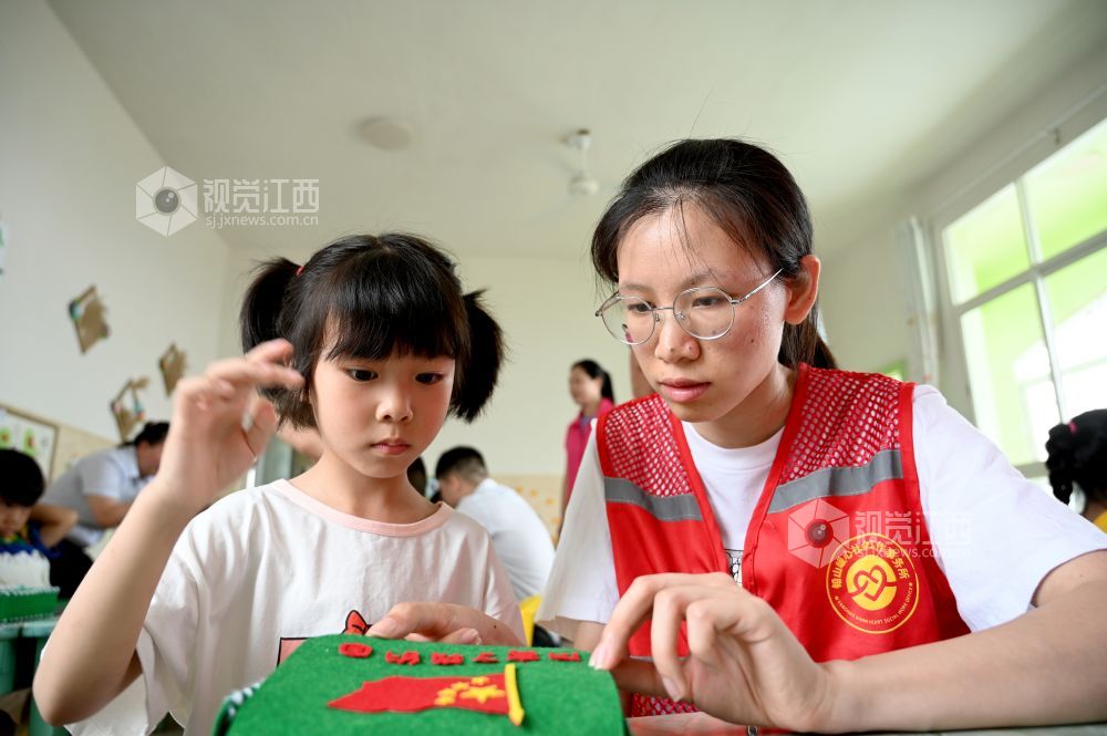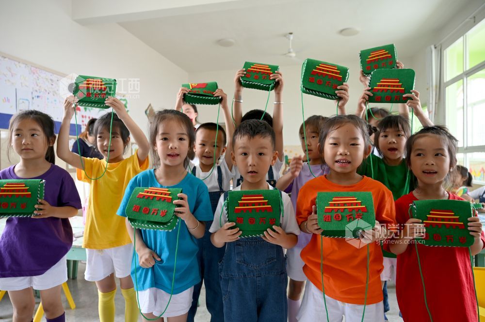 2023年6月1日,在江西省上饶市铅山县稼轩乡苗苗幼儿园,孩子正在制作红军包。为进一步传承红色文化,厚植爱党爱国情怀,稼轩乡苗苗幼儿园,开展“激扬家国情 奋斗新征程——童心向党庆六一”主题活动,通过讲党旗知识,幼儿制作军帽、红军包等形式,让红色基因、革命薪火代代传承,让党的光芒永续。