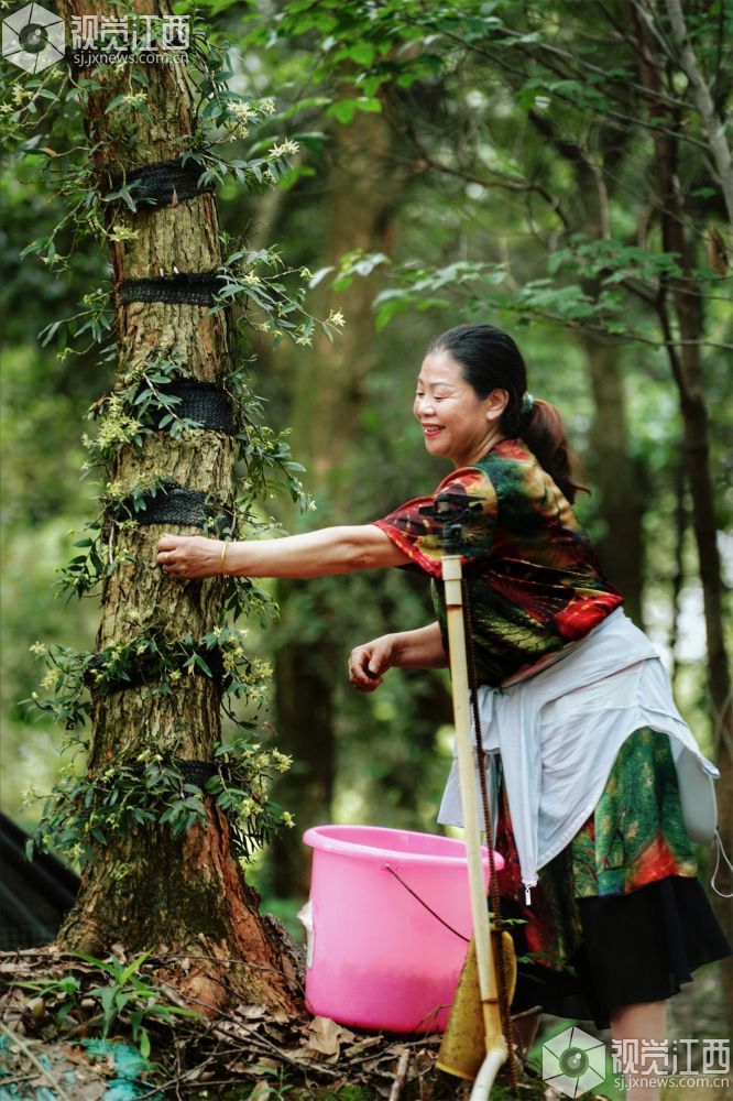 6月2日,江西新余水北镇慕江村委习家村的林下仿野生石斛种植基地,石斛花暗香浮动,村民们正忙着采摘石斛花,一派繁忙的丰收景象。据悉,慕江村委习家村石斛基地采取“公司+村集体+脱贫户”产业化经营模式,年收益达30余万元,实现了产业增效、村民增收,助力乡村振兴。