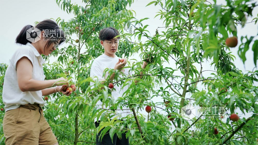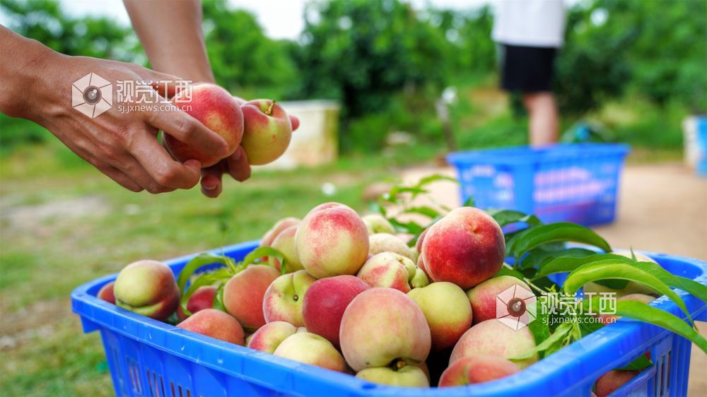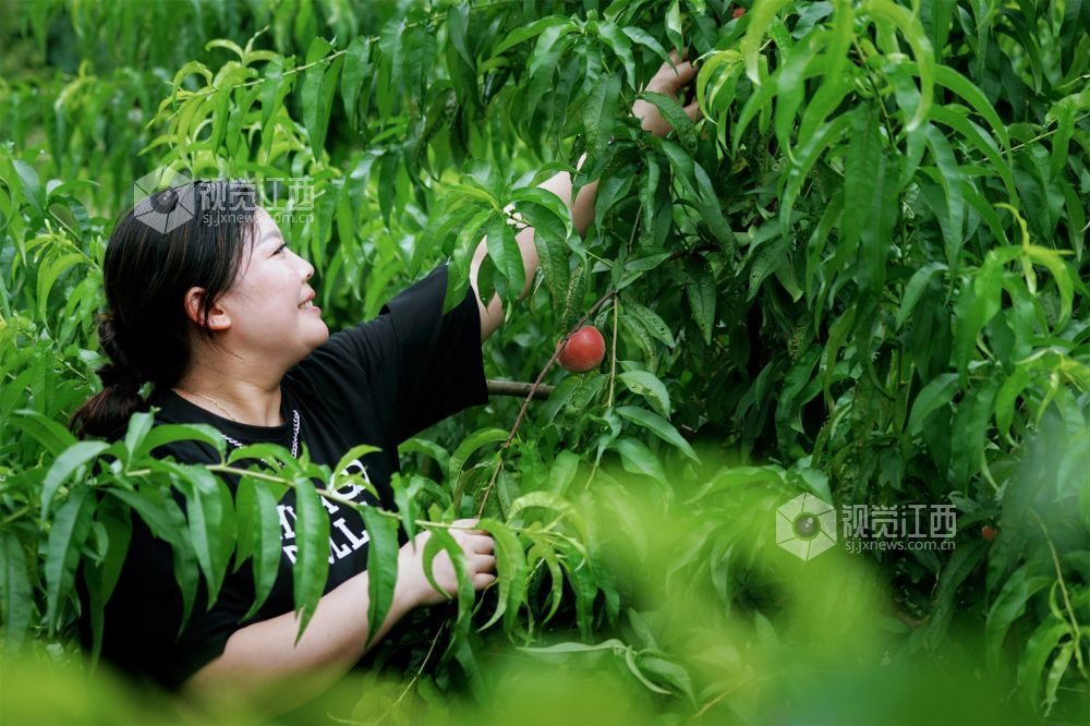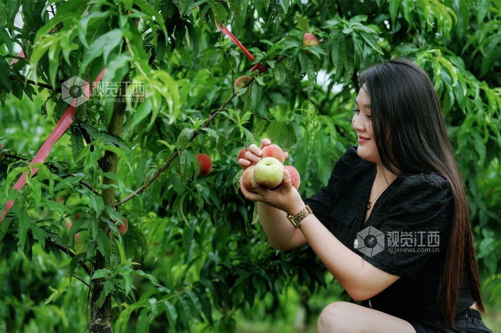 6月1日,游客在白湄村桃园基地采摘水蜜桃。该果园位于新余市仙女湖区河下镇白湄村,眼下,100余亩鲜桃喜获丰收,吸引不少市民前来采摘。