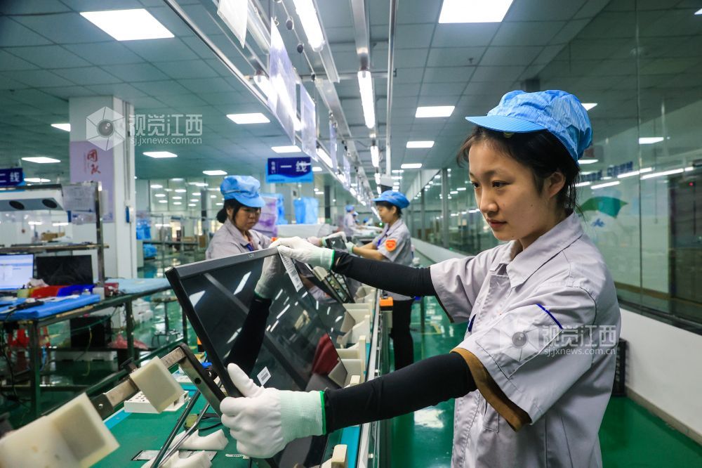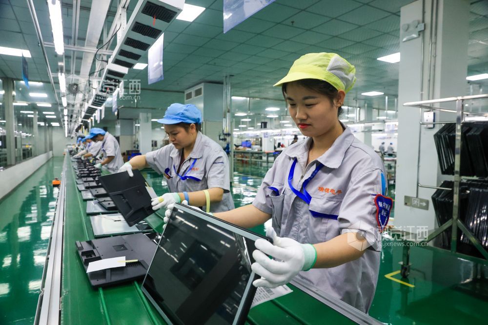 2023年6月5日,江西省九江市瑞昌经开区智造小镇内的江西瑞康技术有限公司车间内,工人们正在生产线上赶制订单。