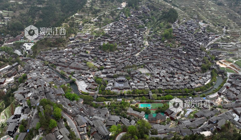西江千户苗寨由十余个依山而建的自然村寨相连成片,四面环山,重连叠嶂,梯田依山顺势直连云天,白水河穿寨而过,将西江苗寨一分为二。其在半山建造独具特色的木结构吊脚楼,千余户吊脚楼随着地形的起伏变化,层峦叠嶂,点、线、面的空间布局很好地在西江苗寨中呈现出来,使整个苗寨富有节奏感。西江千户苗寨具有浓厚的文化底蕴和地域特色,苗族风情遍布村寨,是一座露天博物馆,一部苗族发展史诗,是观赏和研究苗族传统文化的大看台。1992年,西江千户苗寨被列为贵州省省级文物保护单位。2005年,西江千户苗寨吊脚楼被列入首批国家级非物质文化遗产名录,为AAAAA级旅游景区。视觉江西 艾世民 摄