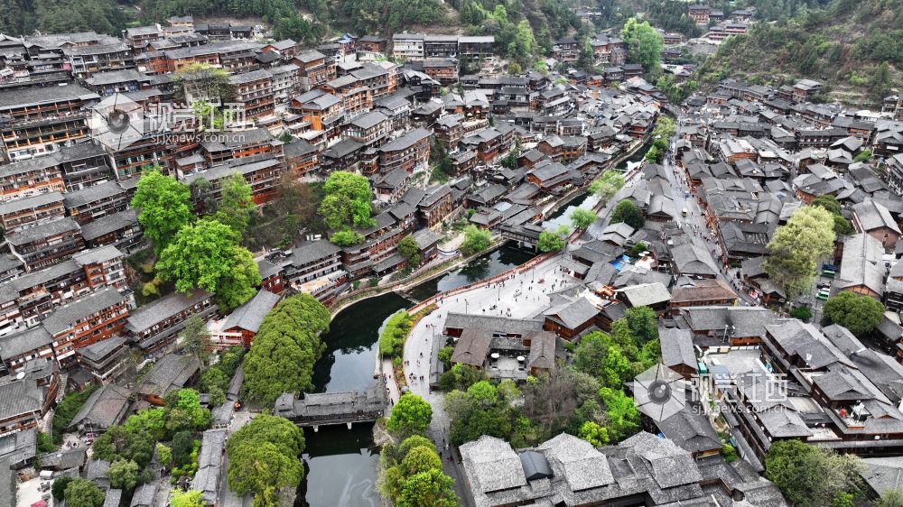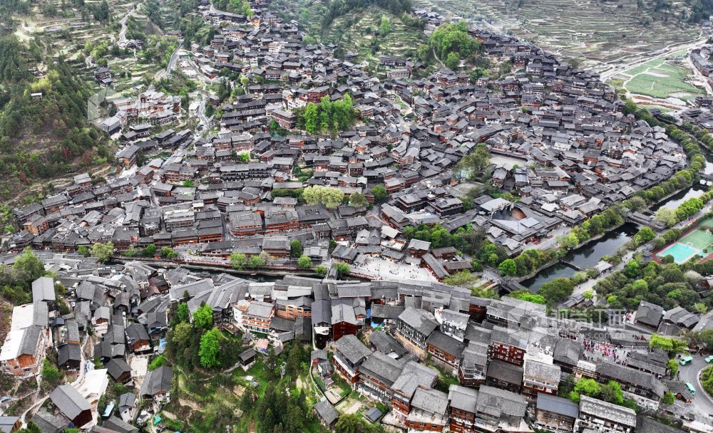 西江千户苗寨,位于贵州省黔东南苗族侗族自治州雷山县西江镇南贵村,共有1400多户,5000余人,苗族人口占总人数的99.5%,是世界上最大的苗族聚居地。