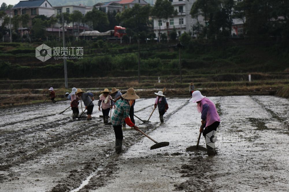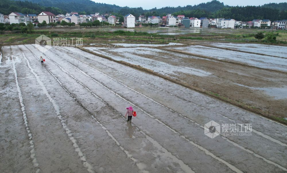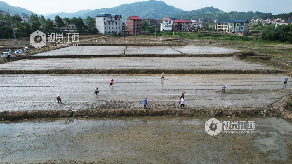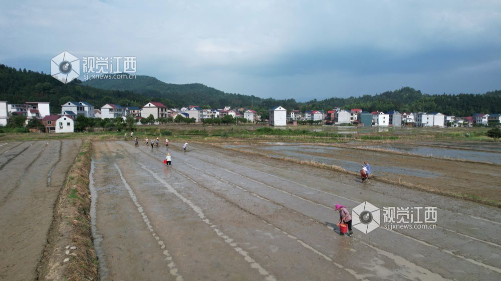 6月5日,江西省莲花县南岭乡湾源村杂交水稻制种基地,村民正在田间忙着播种、培土、覆盖。