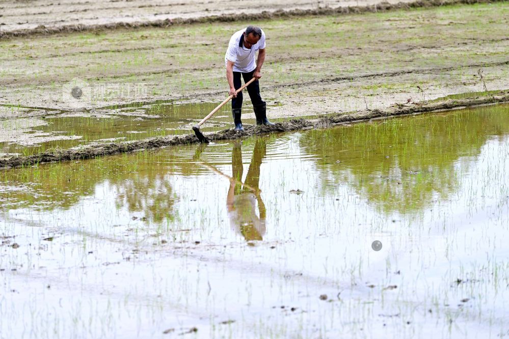 6月6日,芒种节气,江西省宜春市万载县农民抢抓农时忙耕作,同时做好农作物夏季管理,田间地头呈现一派忙碌景象。