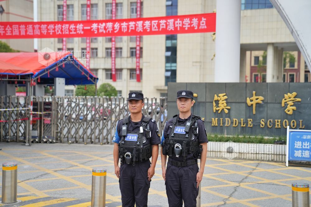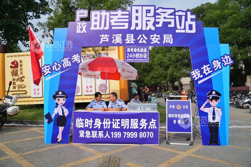 2023年6月7日,在江西省萍乡市芦溪县芦溪中学考点,芦溪县公安民警、交警、快警全警动员提前上岗,在考场外办理临时身份证明、接送高考生、疏导秩序,确??忌忱氤 ?/p>