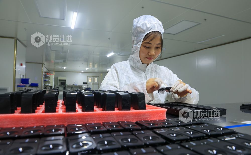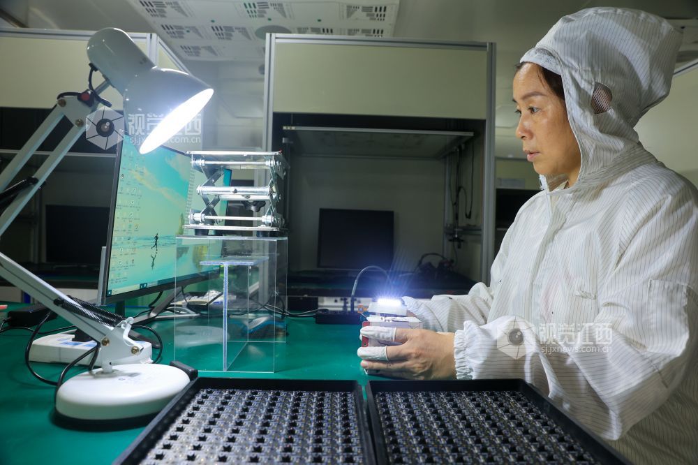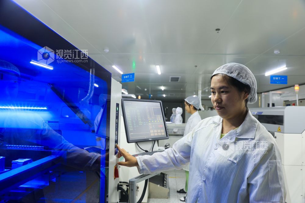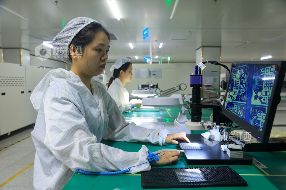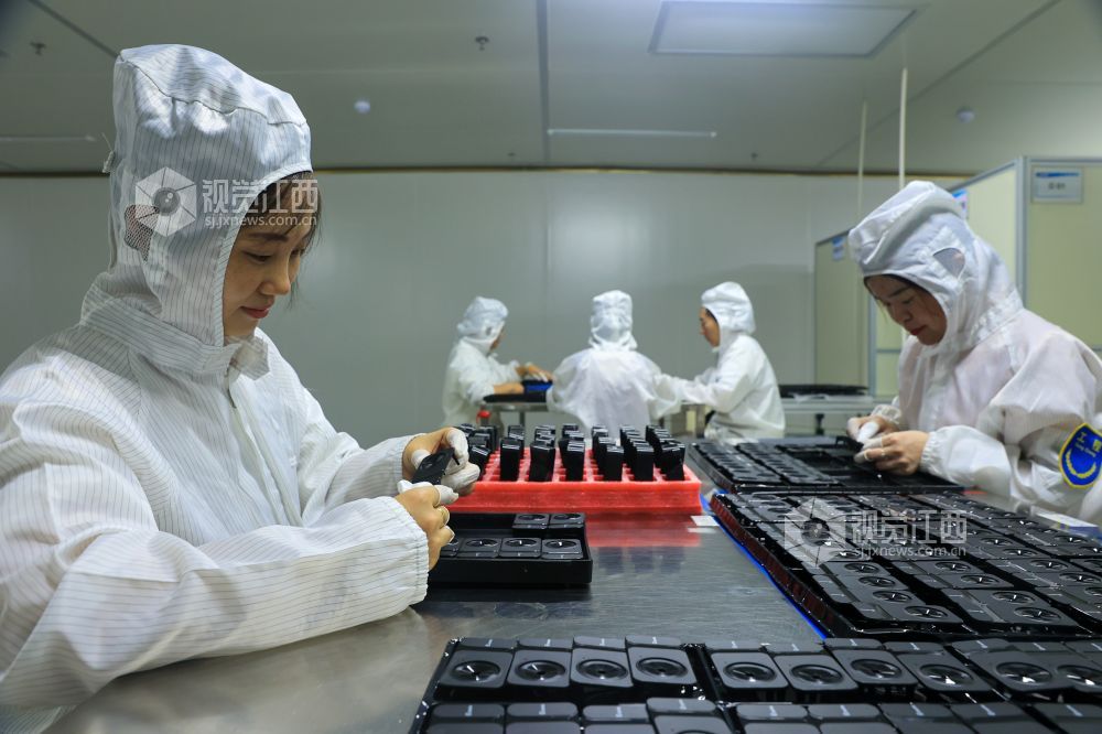 2023年6月8日,江西省九江市瑞昌经开区科技园江西瑞欣影像智能科技有限公司车间内,工人们正在生产线上赶制国内外订单。