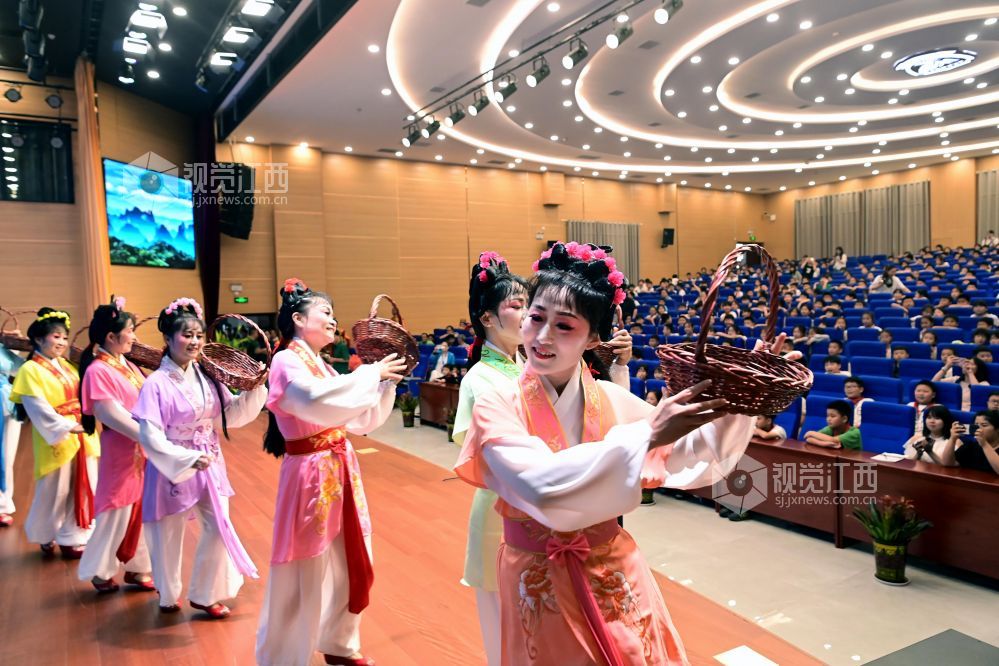 6月8日,江西省万载县文化馆组织演艺人员走进该县外国语学校为师生带来一场非遗文化盛宴。