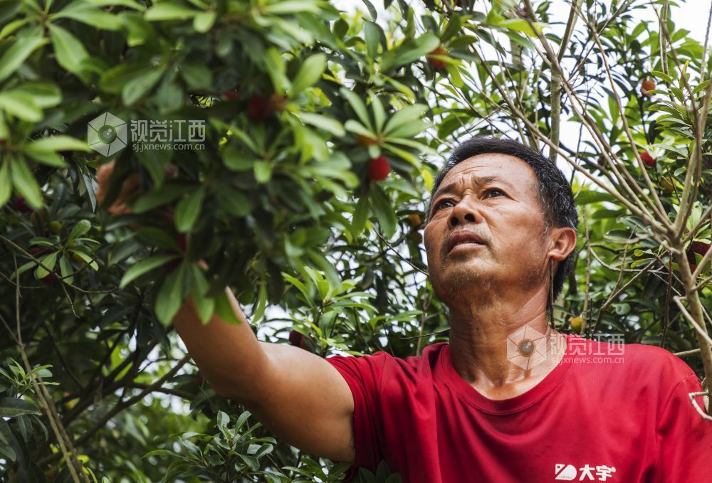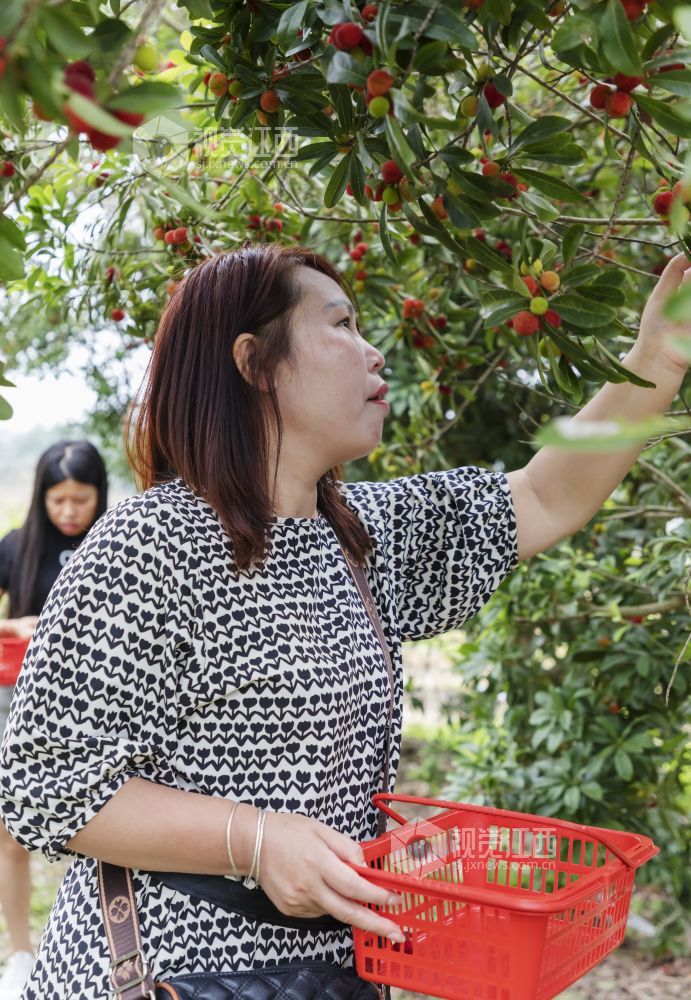 2023年6月8日,江西省新余市分宜县洋江镇杨潭村杨梅基地喜获丰收,村民和游客正忙着采摘成熟的杨梅,呈现出一派丰收的喜人场景。