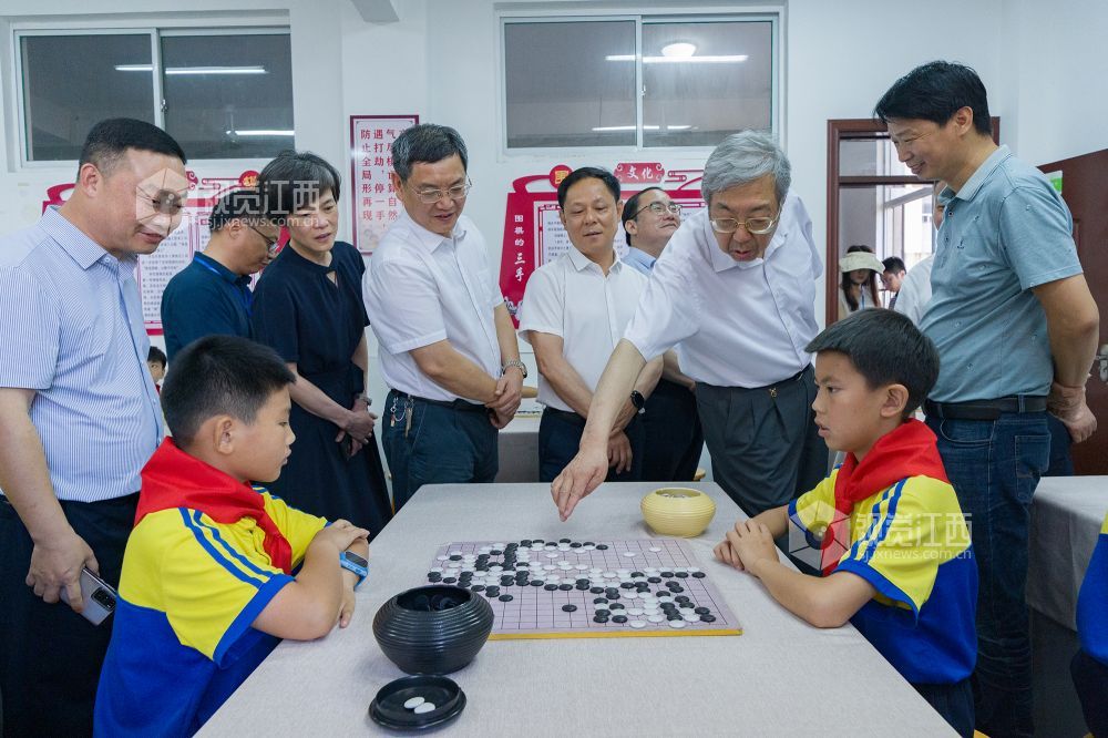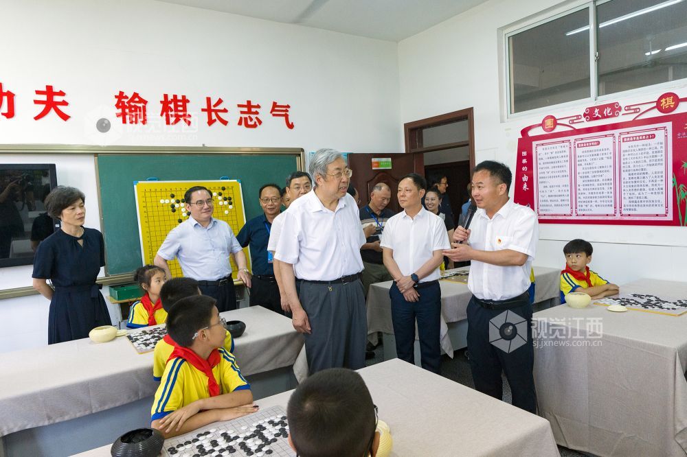 2023年6月9日下午,中国围棋协会、江西省围棋协会的围棋名家走进“全国围棋之乡抚州围棋进校园示范学校”金溪县锦绣小学,开展围棋普及公开课活动。中国围棋协会主席林建超一行详细了解了该校围棋活动开展情况,并在围棋公开课上为孩子们现场指导和加油鼓劲。