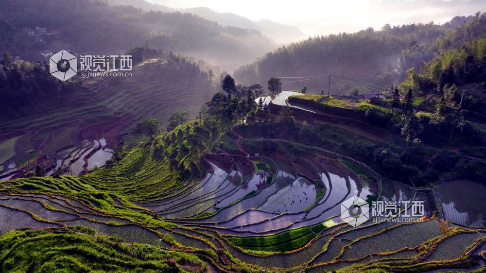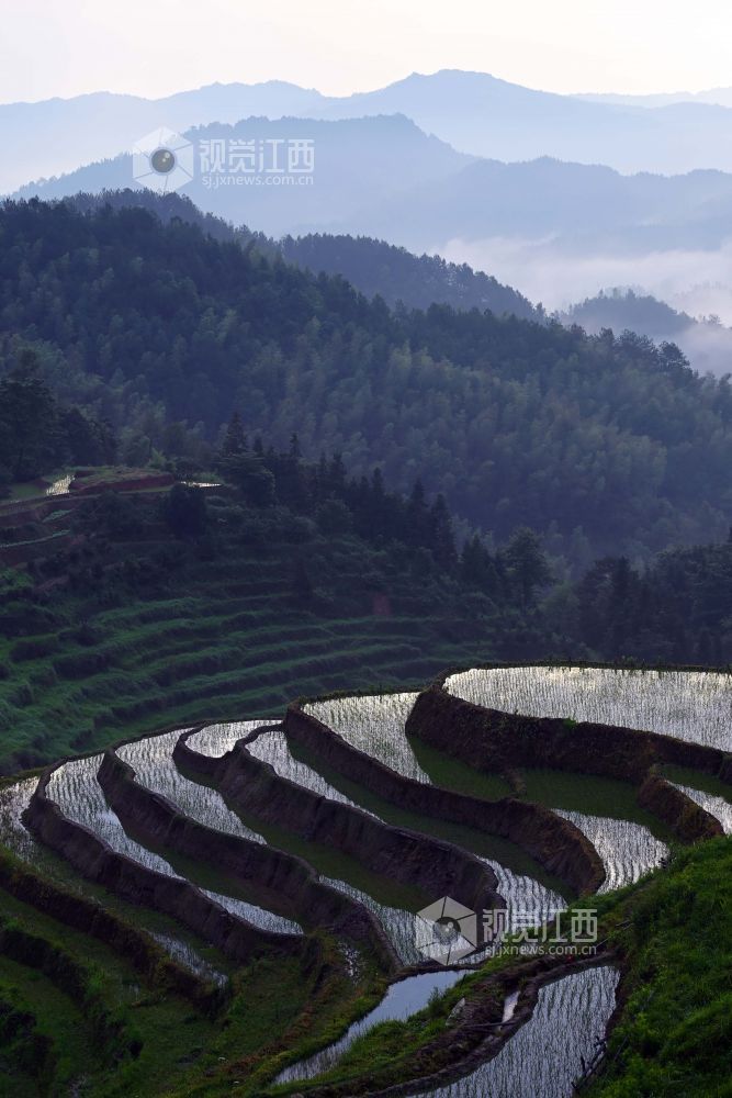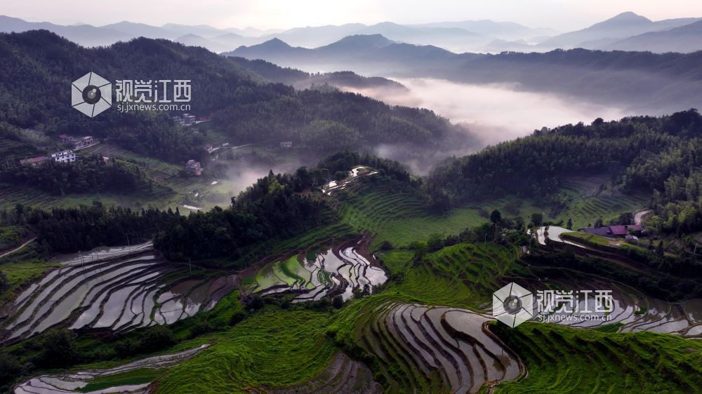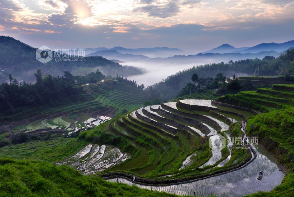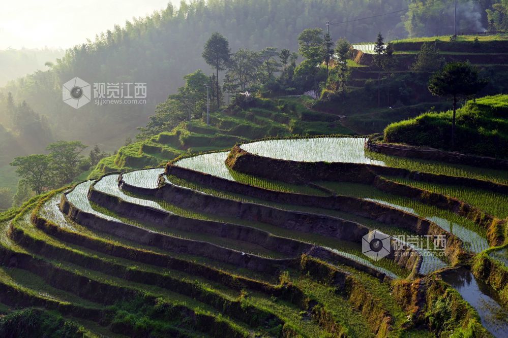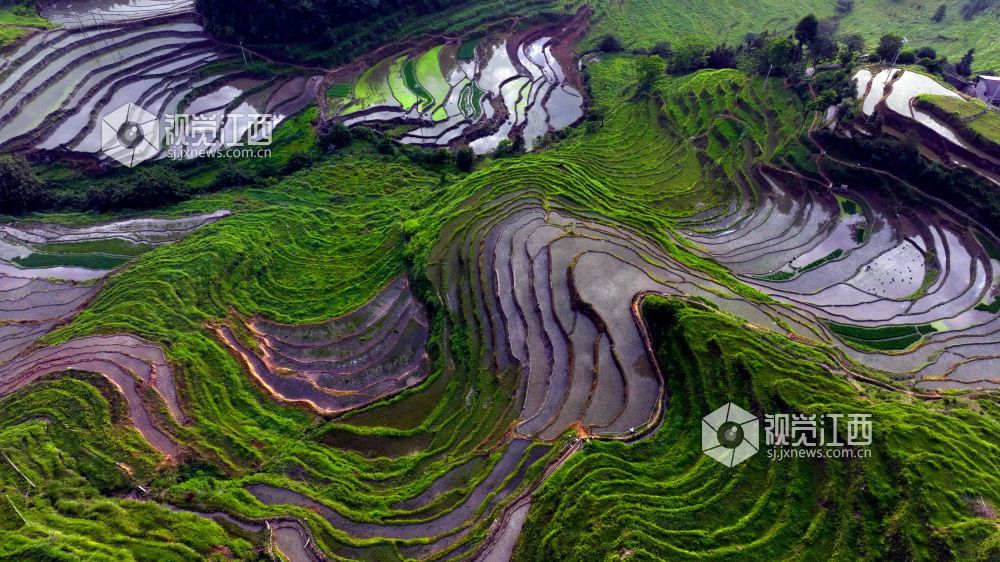 2023年6月10日,江西省宜春市万载县高村镇新竹村村民在高山梯田犁田、插秧,忙碌的身影与层层叠叠的梯田交相辉映,构成一幅和谐的耕作美景图。据悉,近年来,当地依托生态优势,利用传统的耕作模式,种植高山梯田水稻,带动乡村农旅融合发展,助力农户增收致富。