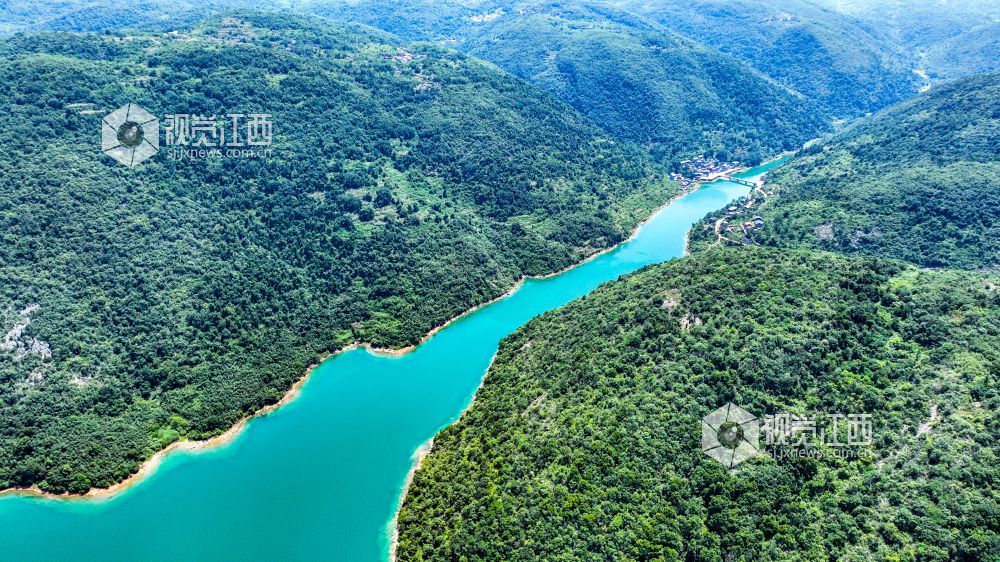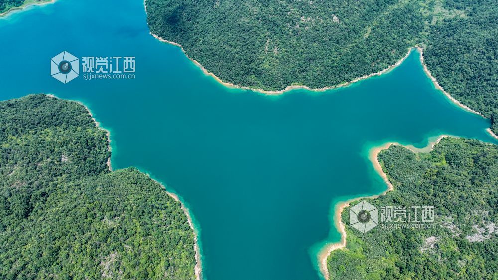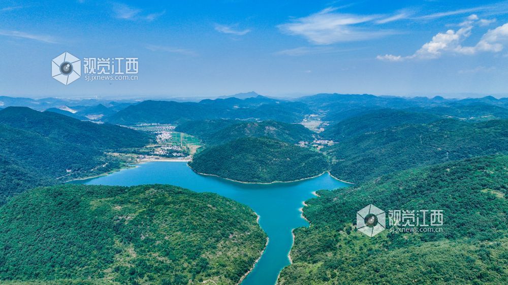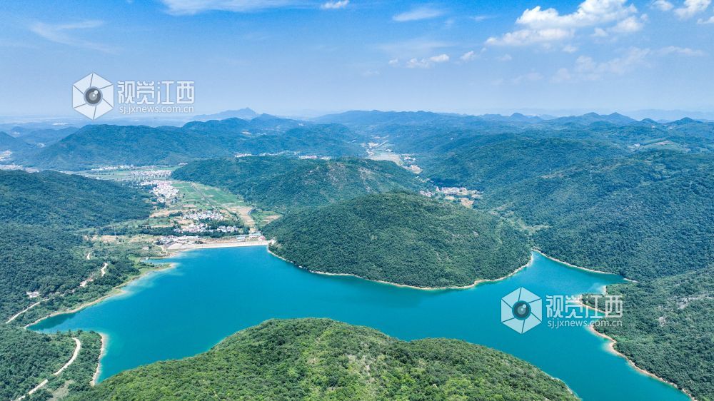 2023年6月10日,被群山簇拥环绕的江西省瑞昌市石门水库碧波荡漾,水天一色,构成一幅生态秀美的壮丽画卷。