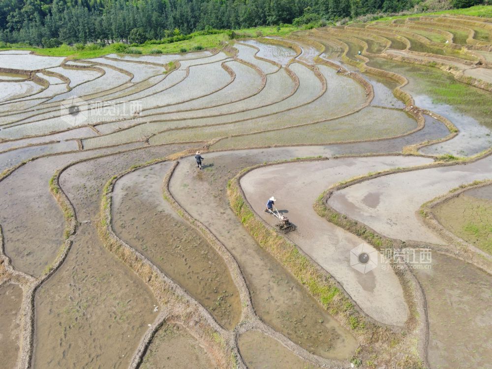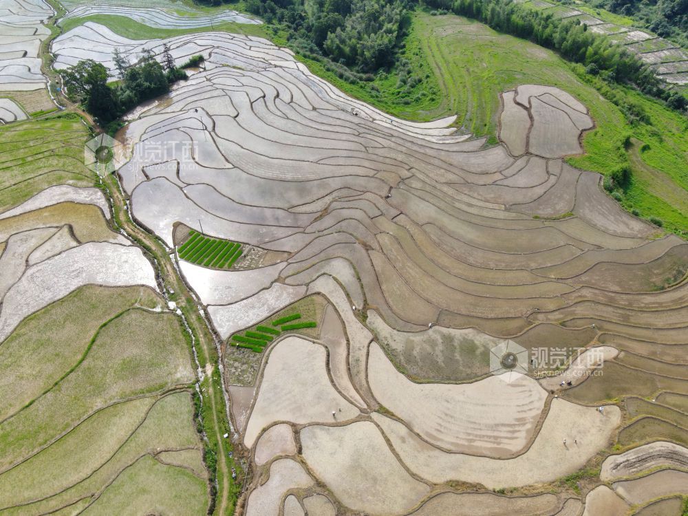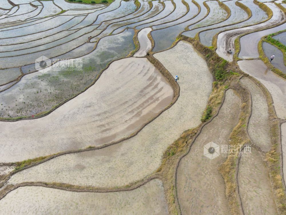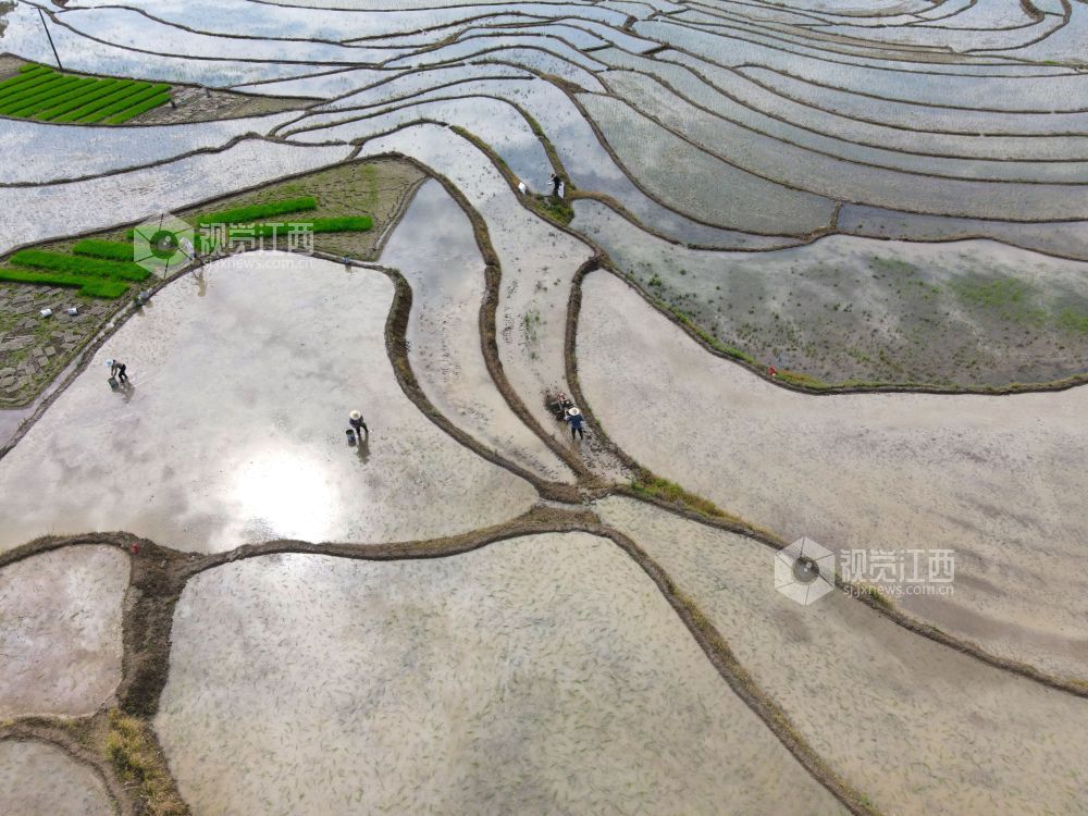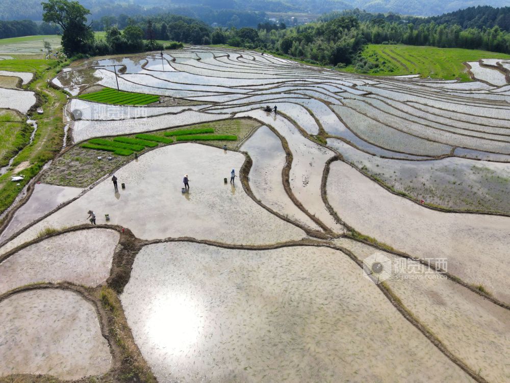 6月10,时已芒种,江西省宜丰县的潭山古阳寨梯田注满水后如一块块镜子,高高低低,层层叠叠,令人叹为观止。