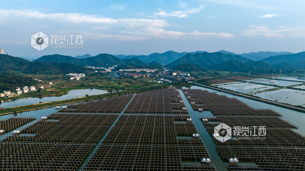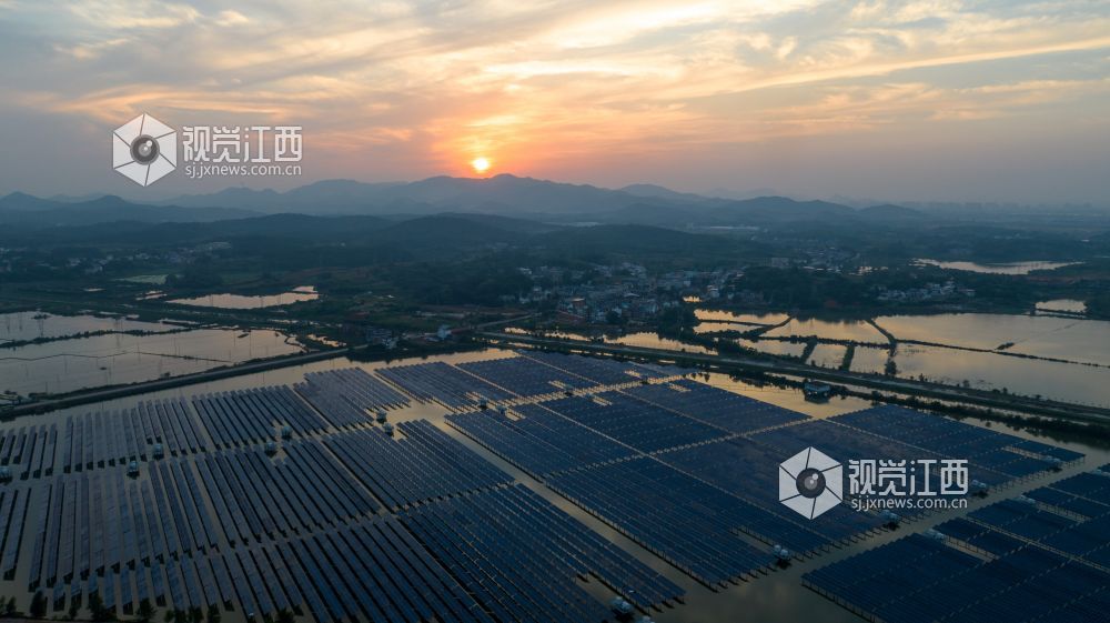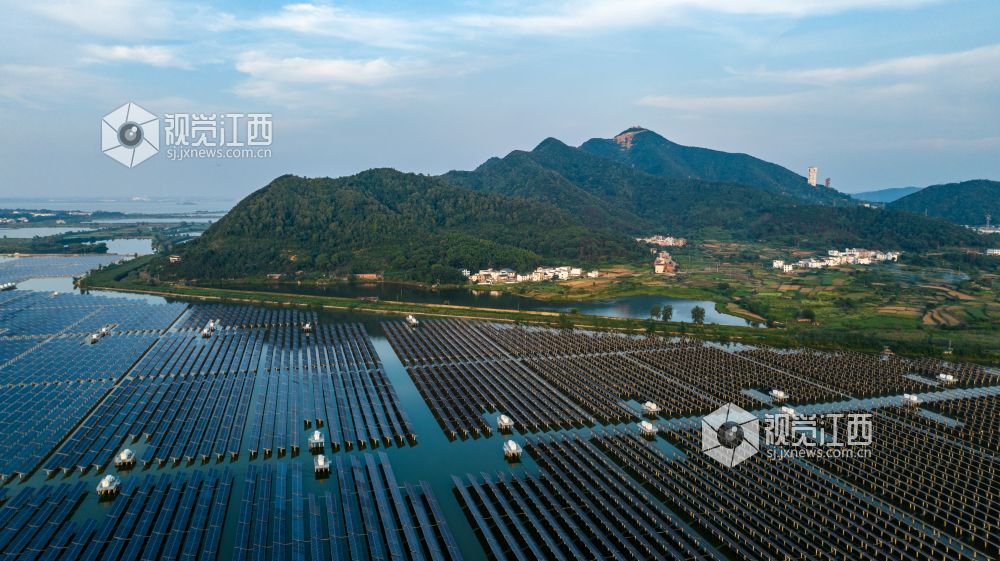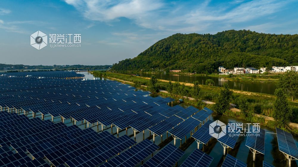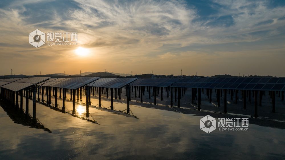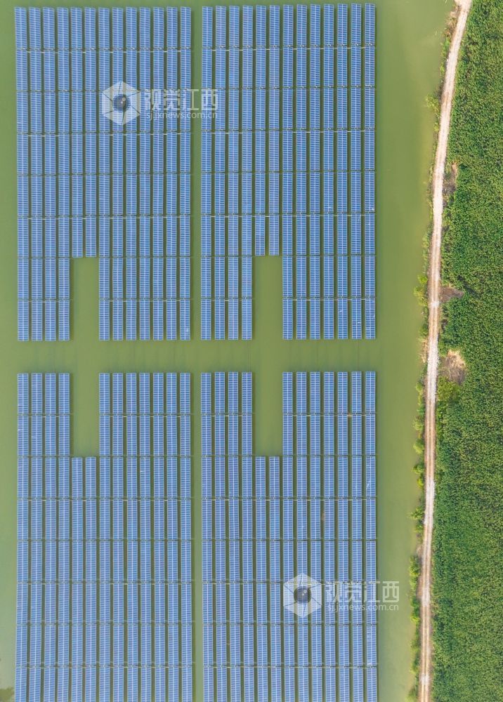近年来,瑞昌市因地制宜实施“渔光互补”光伏电站项目,最大发挥自然资源效应,形成了“水上能发电、水下能养鱼”的生态美景。视觉江西 魏子恒 魏东升 摄