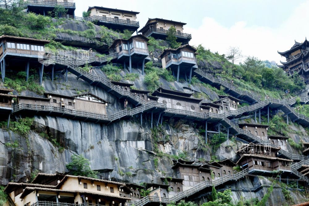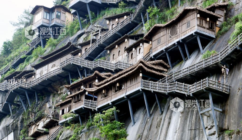 据了解,江西省上饶市广信区望仙谷悬崖民宿建在110多米的白鹤崖之上,悬崖上建有崖上民宿、悬空玻璃客房、悬崖图书馆和悬崖餐厅、高空观景台,俯瞰悬崖民宿,犹如生长在山体的“鸟巢”,似“天空之城”。游客来到望仙谷,爬栈道、登拱桥、要是在崖上住上一宿,犹如与山野为邻,与星月相伴,尽享闲云野鹤、回归自然的生活。