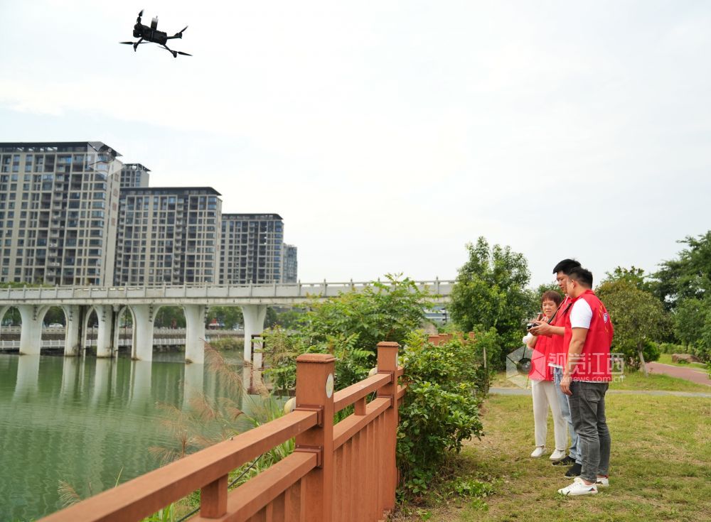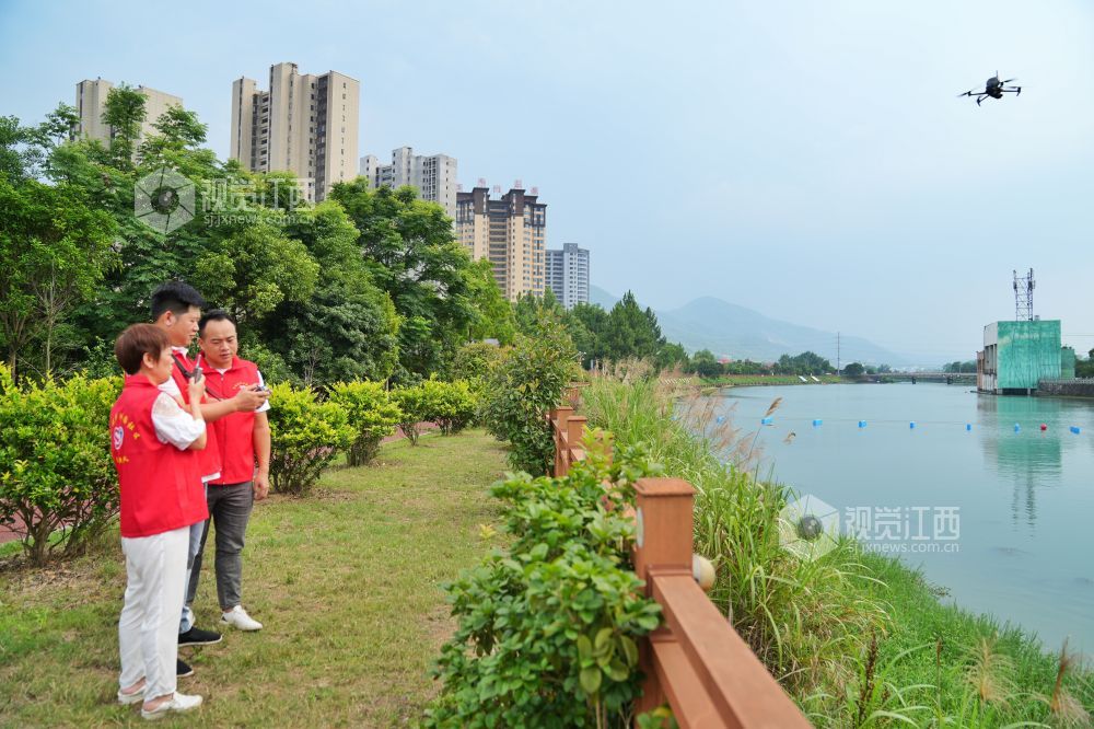 2023年6月12日,江西省萍乡市芦溪县芦溪镇芦洲园社区组织党员志愿者通过无人机开展防溺水宣传,并对袁河水域进行巡逻检查。
