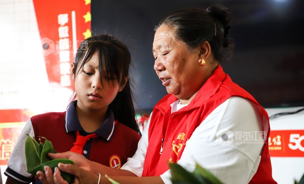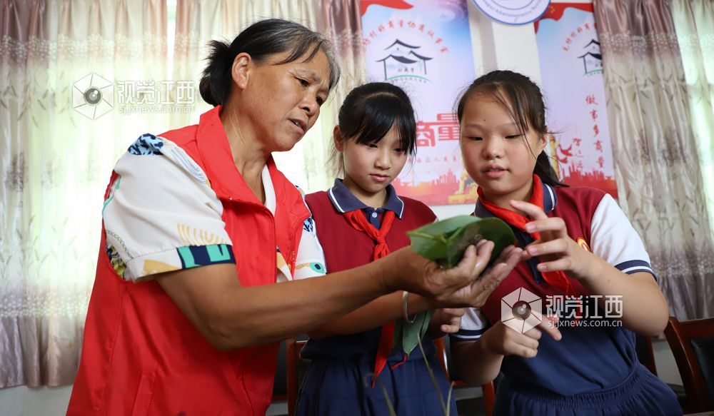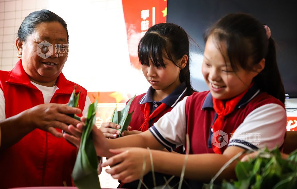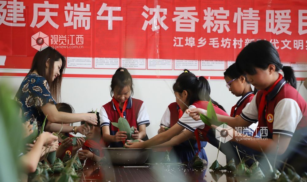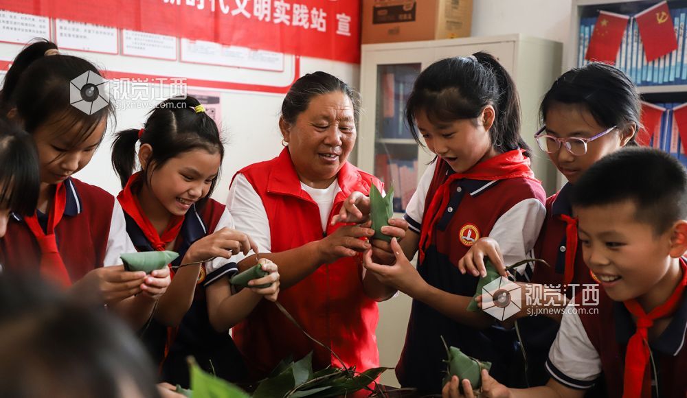 6月16日,江西省余干县江埠乡毛纺村新时代文明实践站联合毛纺小学开展包粽子体验活动,学生们纷纷体验手工包粽子,学习传统文化。