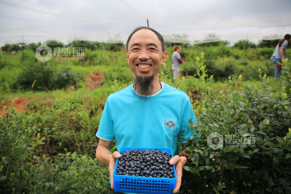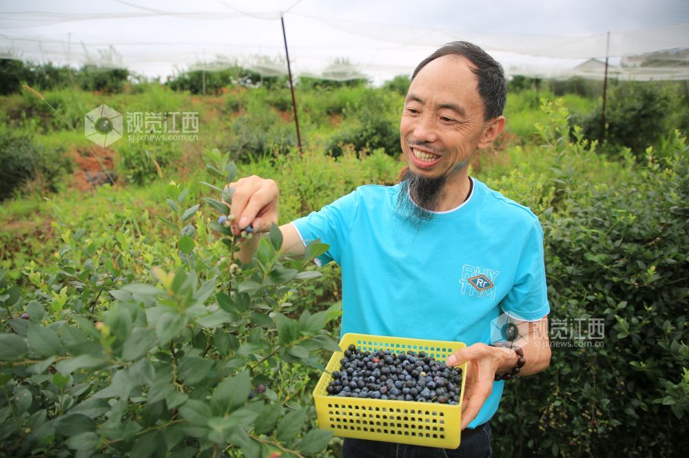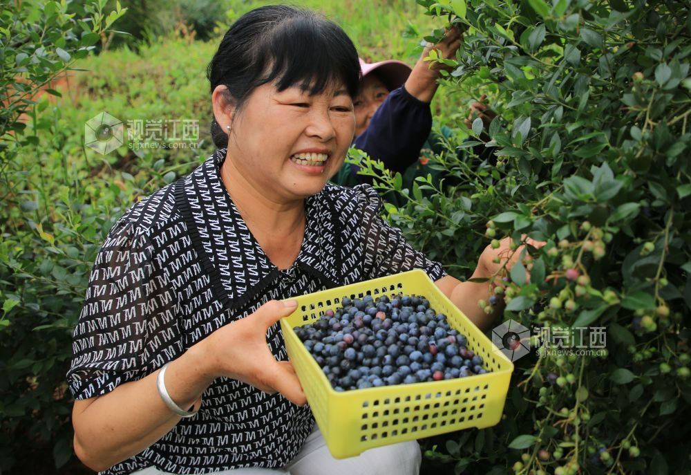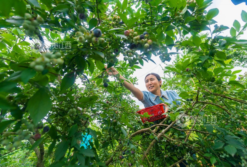 6月16日,江西省永新县象形乡黎江村贝加尔河生态农业基地的蓝莓陆续成熟,吸引了众多游客前来旅游观光,体验采摘的乐趣。