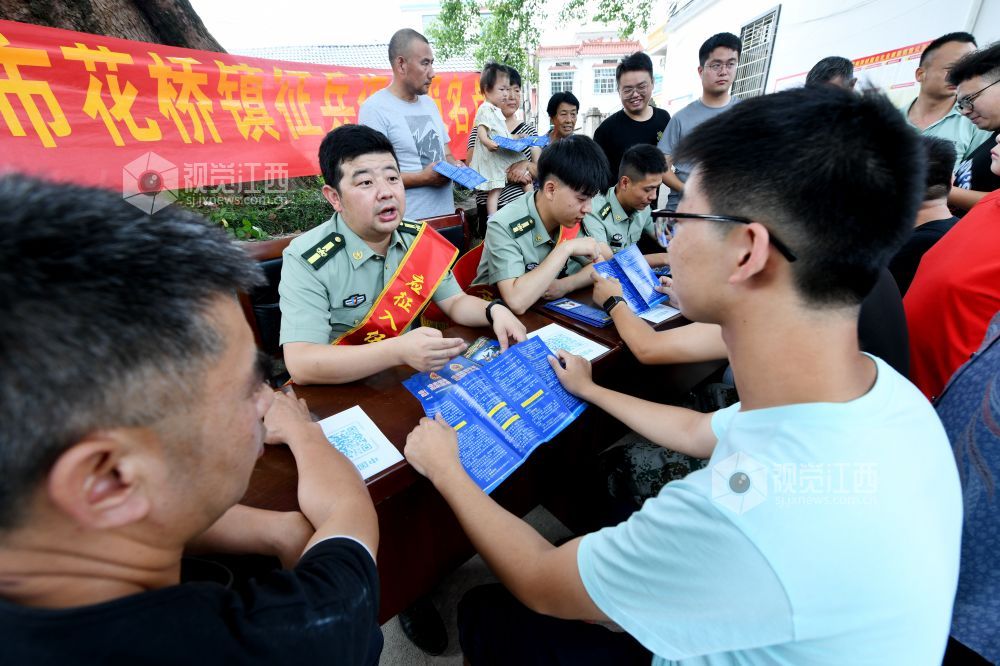 据了解,为让乡村农家优秀青年积极应征报名参军保卫国家安全,江西省德兴市花桥镇武装部干部深入乡村村头院落,“摆摊”设点,现场宣讲国家的征兵政策,同时他们还专门制做相关宣传资料和宣传标语,走村串户宣传鼓励优秀青年积极应征,仅当天就吸引了众多适龄青年和家长慕名前来了解咨询有关征兵条件及报名程序,其中有多名优秀青年通过线上和线下踊跃报名应征。